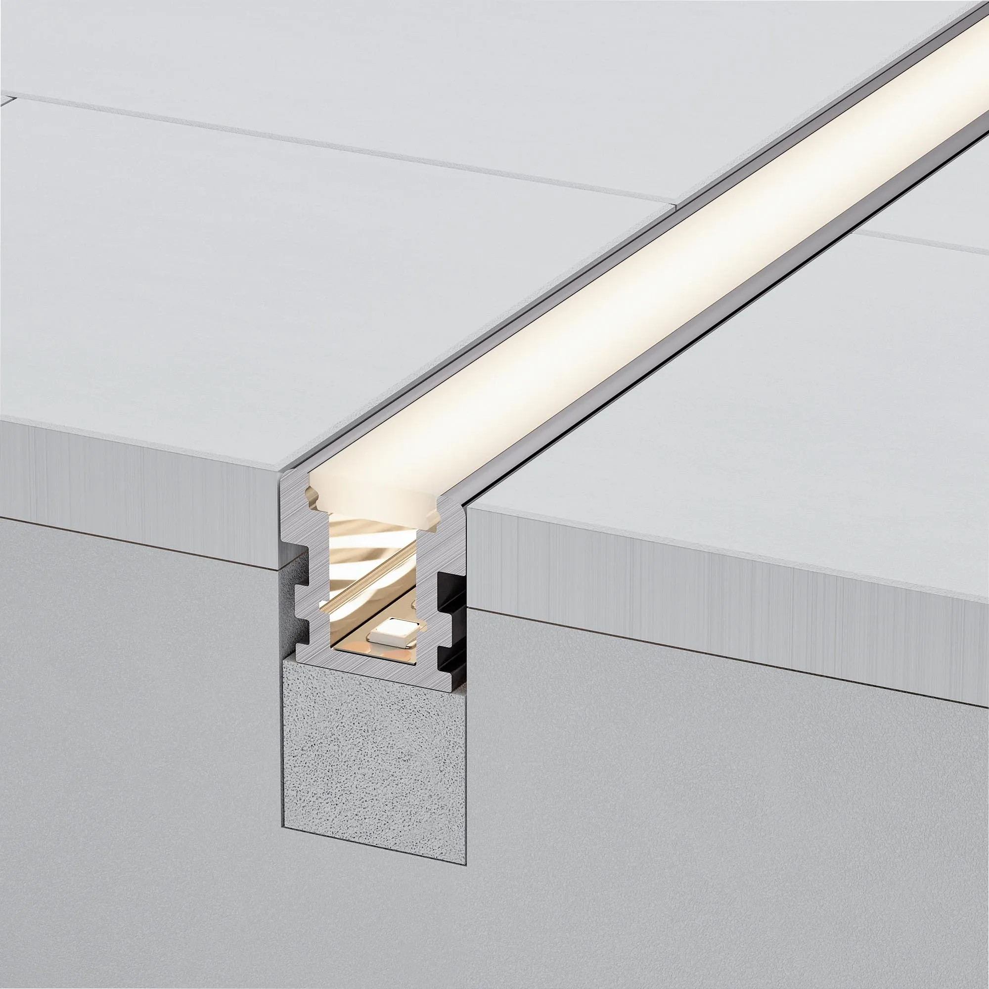 Алюминиевый профиль, встраиваемый в пол. Высокопрочный алюминий (неанодированный). Герметизация до IP67. Может использоваться как внутри помещений, так и снаружи (степень защиты IK10). Габаритные размеры (L×W×H): 2000x26x26 мм. Ширина площадки для ленты 12,2 мм. Экран (из сверхпрочного поликарбоната, УФ-устойчивый), заглушки и другие аксессуары приобретаются отдельно. Цена за 1 метр.