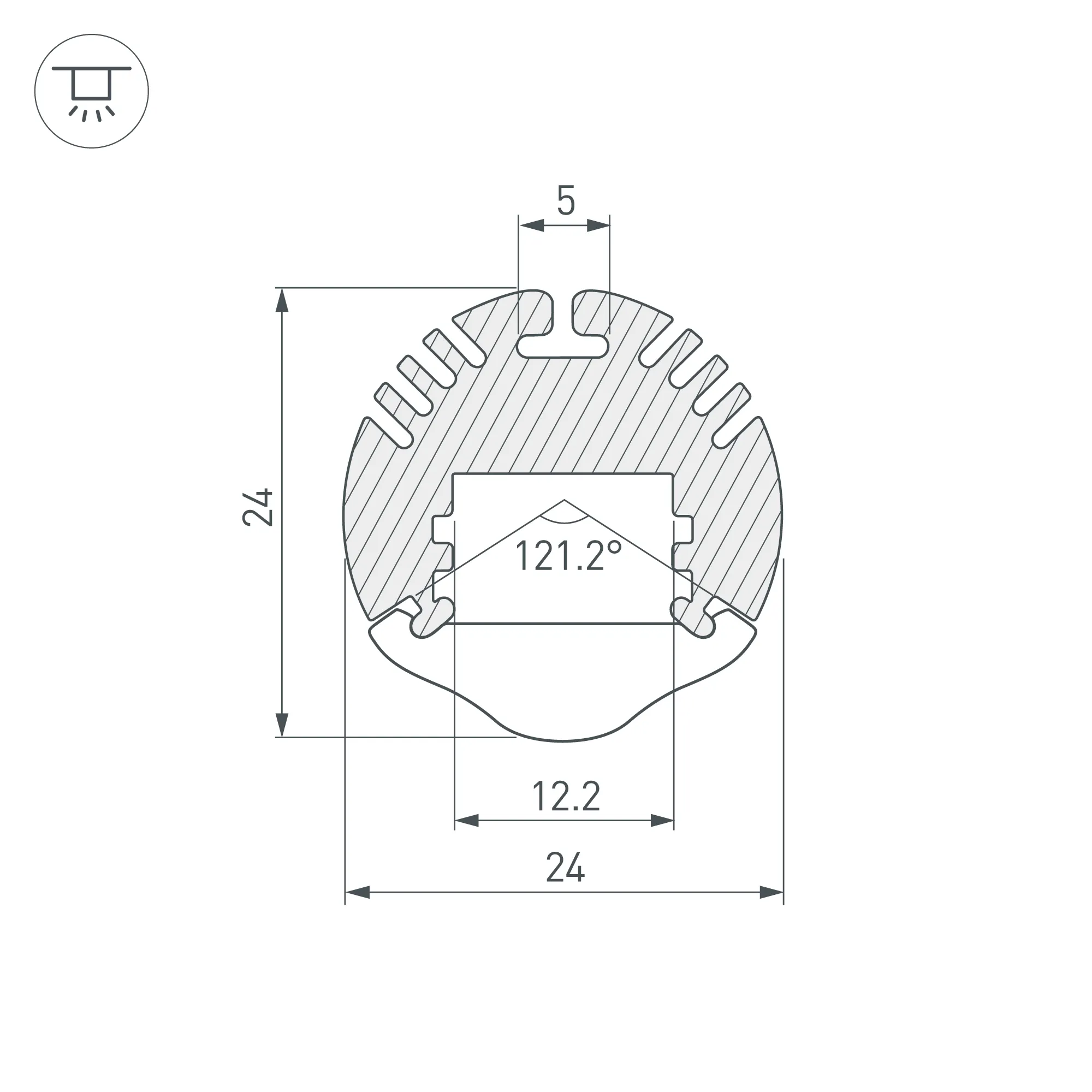 Профиль с экраном ALU-ROUND-2000 ANOD+LEN30 (Arlight, Алюминий)