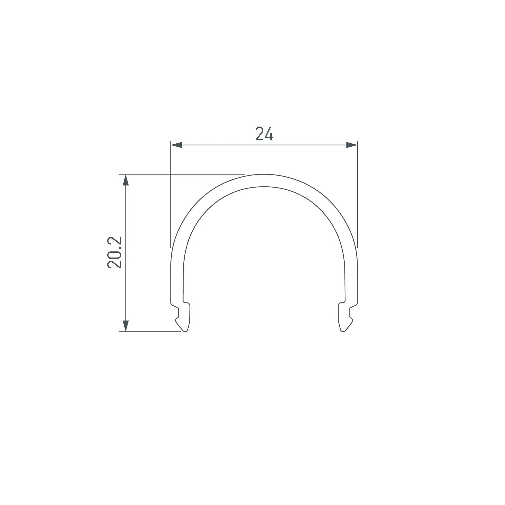 Прозрачный круглый экран (рассеиватель) для профиля PLS-GIP. УФ-защита. Размеры 2000х24.3х19.7 мм. Материал PMMA.