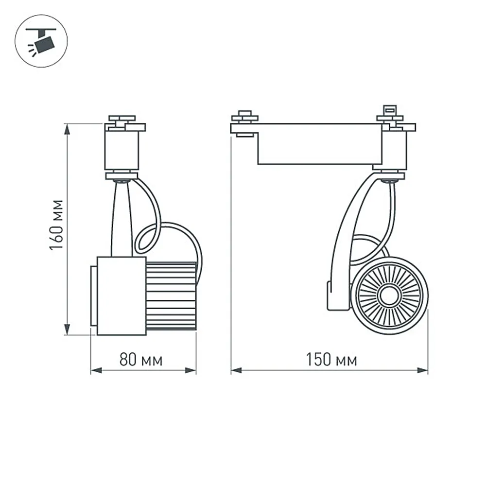 Подвесной светильник для треков/шин 2 провода. Светодиод CREE 9W, цвет ТЁПЛЫЙ 3000K, св.поток 675-765 лм, угол 24°. Корпус белый. Мощность 9Вт, питание AC180-240V. Максимальные габариты HxLxW: 160х80х150 мм