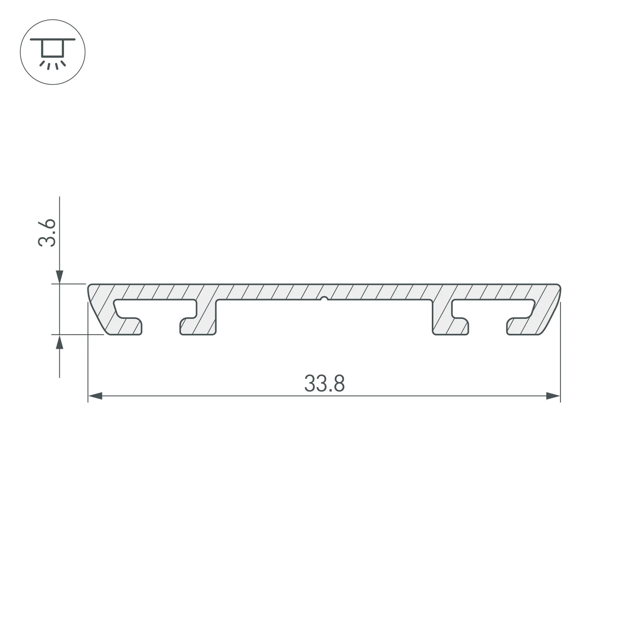 Поставка под заказ от 50м. Алюминиевый анодированный профиль-основание для установки профиля PHS-A-2000 на клипсы TEK-PLS-CLIP (016389). Внутренний паз 2 мм для скрытой проводки. Габаритные размеры (L×W×H): 2000x33,8x3,6 мм. Заглушки и другие аксессуары приобретаются отдельно. Цена за 1 метр.