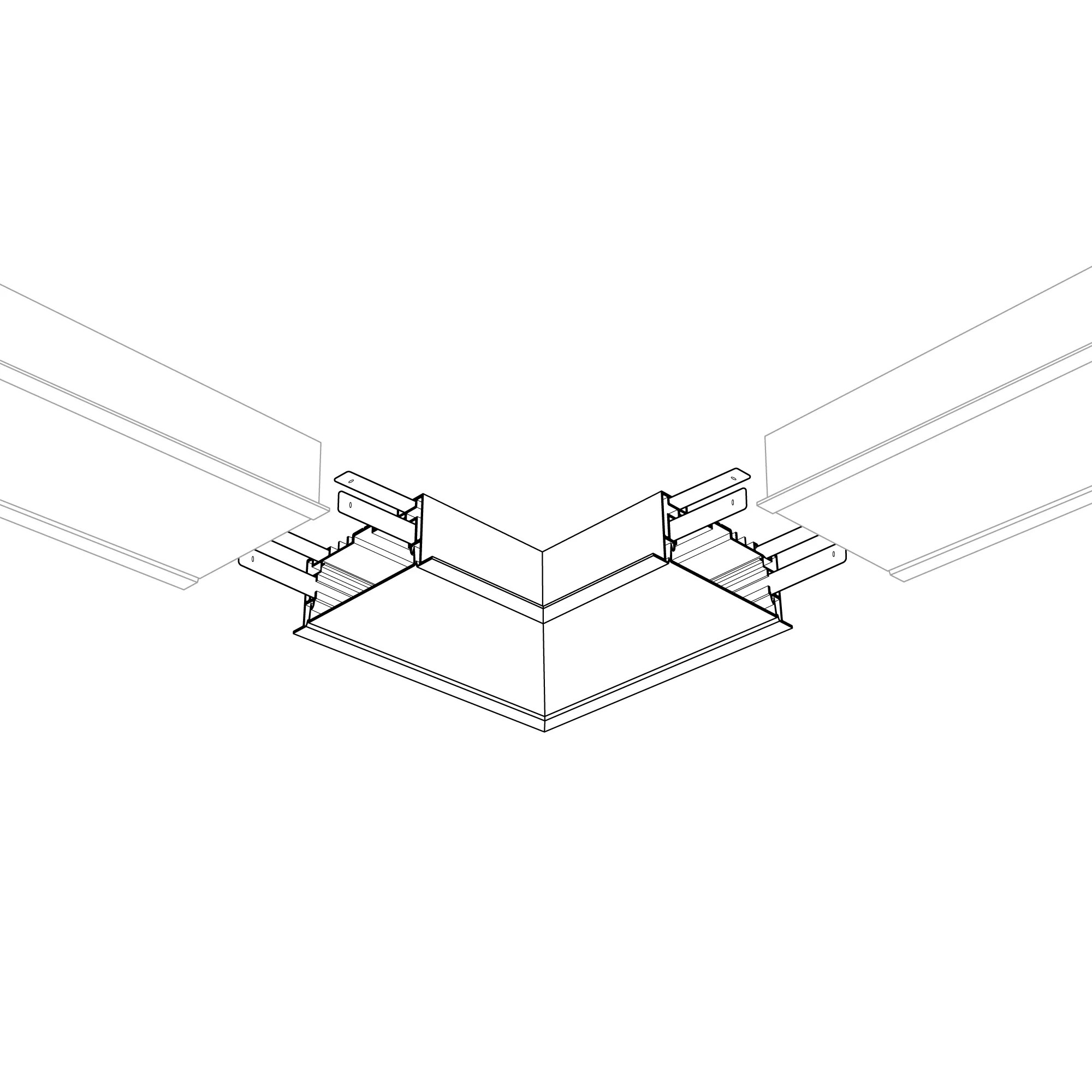 Прямой угол в сборе для соединения 2-х профилей S2-LINIA94-F под прямым углом 90°. Экран образует линию на плоскости. В комплекте матовый экран, соединители. Длина внешней стороны угла 150мм.