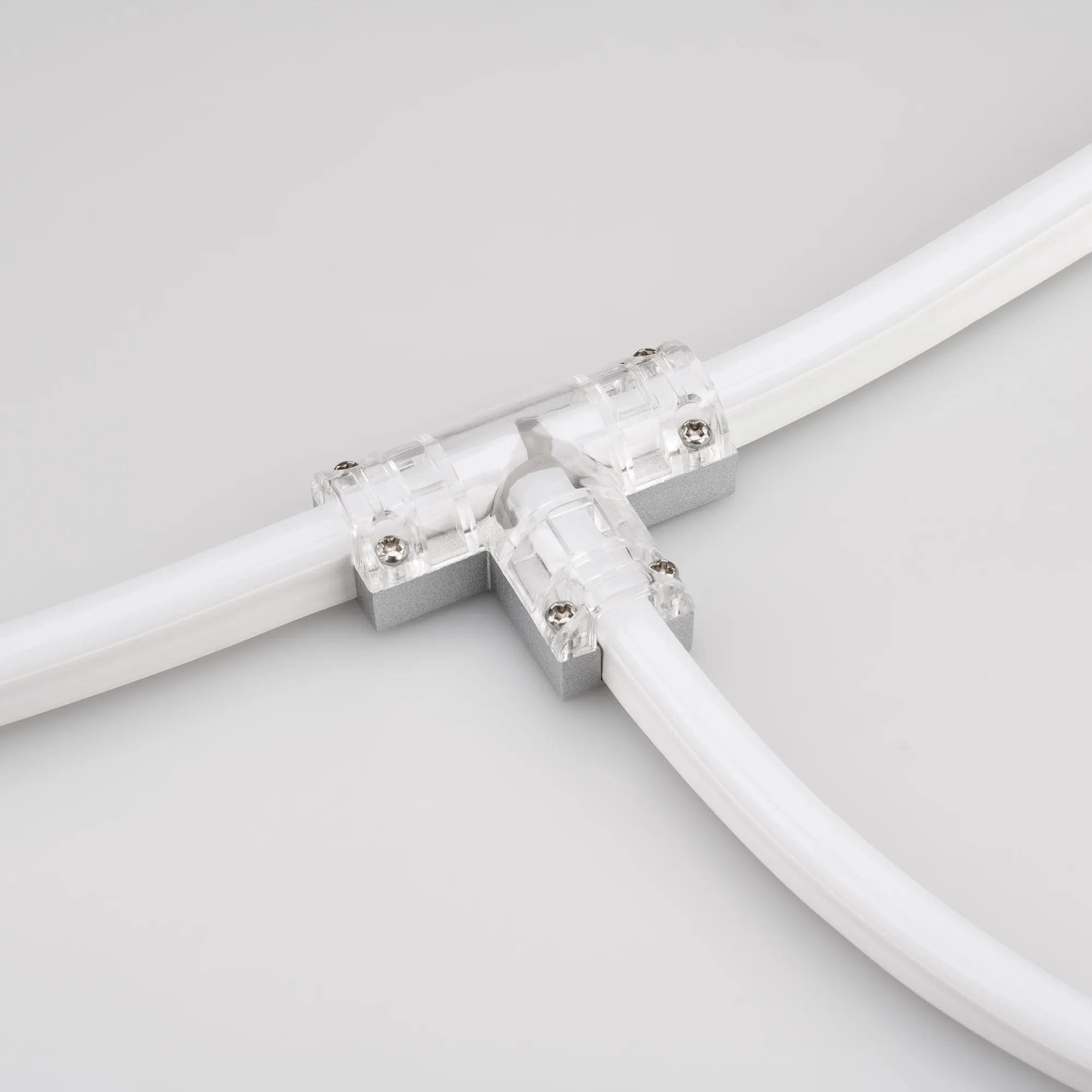 Тройной 2-х контактный соединитель для гибкого неона сечения 16x8mm серии NEON. Обеспечивает непрерывное соединение и сплошную линию свечения без разрывов. Требуется доп.герметизация для соединения IP65. Материал-алюминий, прозрачный пластик. Размеры ДхШ: 60х45мм. Цена за 1шт.