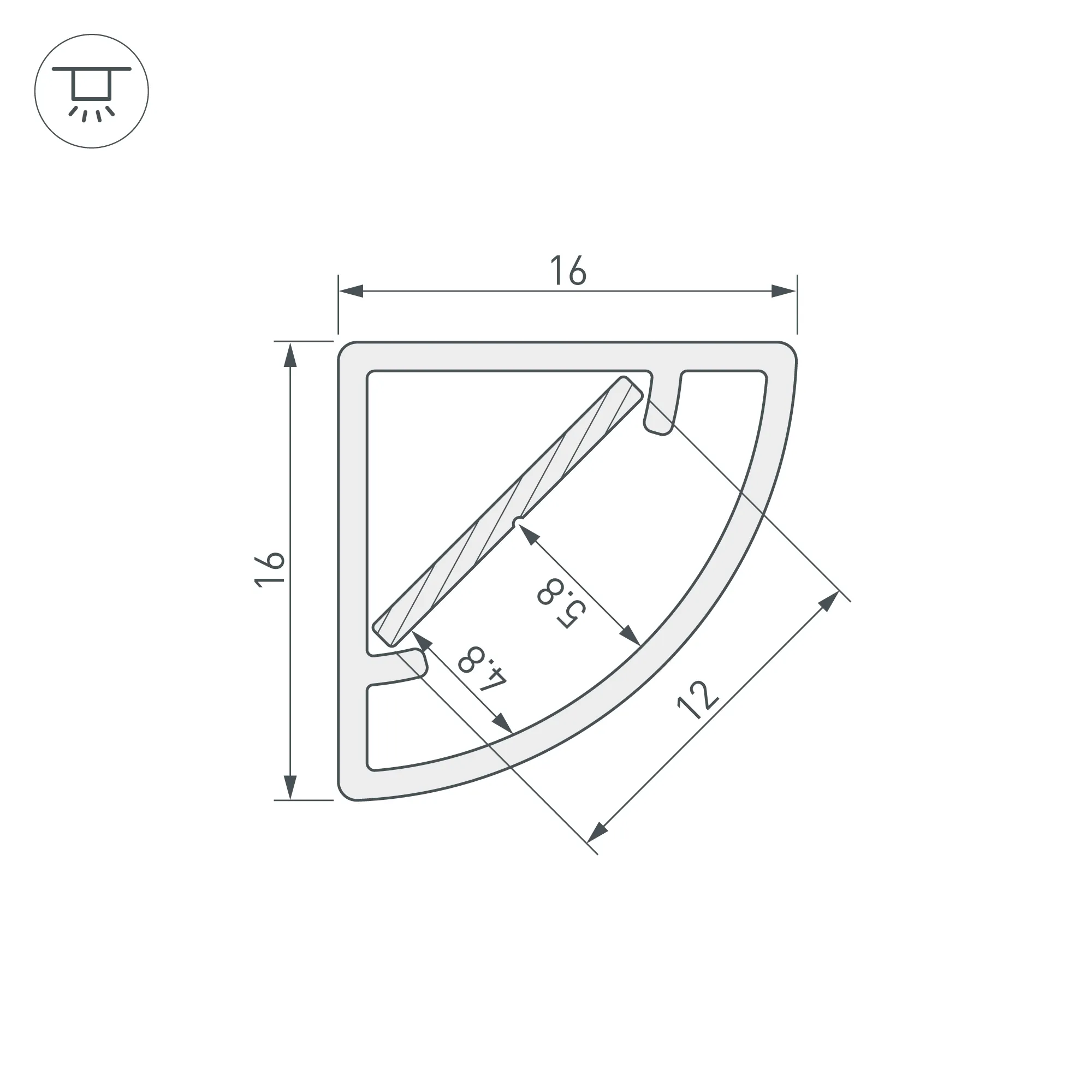 Цельнолитой пластиковый профиль со встроенным матовым экраном. Материал - PC. В комплекте алюминиевая полоса (вставка) для лент шириной 11 мм. Размер 2000*16*16 мм. Класс пылевлагозащиты – IP65 (при соблюдении технологии герметизации). Цена за 1м (включая вставку).