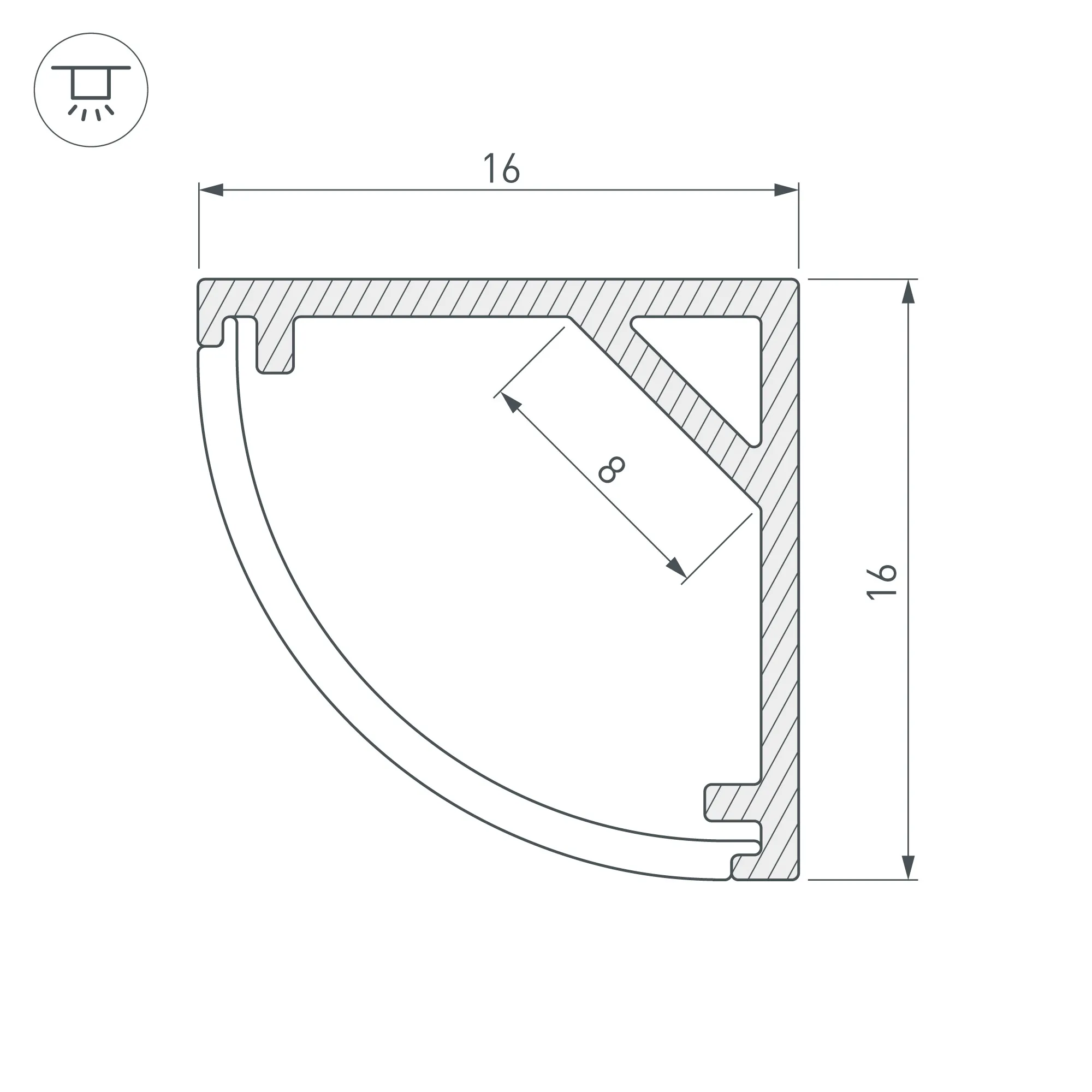 Алюминиевый анодированный угловой профиль для светодиодных лент и линеек. Габаритные размеры (L×W×H): 2000x16x16 мм. Ширина площадки для ленты 8 мм. Экраны, заглушки и другие аксессуары приобретаются отдельно. Цена за 1 метр.
