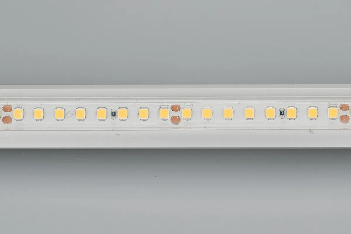 Герметичная IP67 Лента LUX, светодиоды smd 2835, 160шт/м (800шт на 5м). Эффективность 150 лм/Вт, белая плата 8мм, скотч 3М. Цвет БЕЛЫЙ ДНЕВНОЙ (натуральный) 4800-5200K. Угол 120°, цветопередача CRI>85. Питание 24V, мощность 12 Вт/м (60 Вт на 5м). Размеры 5000х10х5мм. Мин.отрезок 50мм, 8 светодиодов. Цена за 1м.