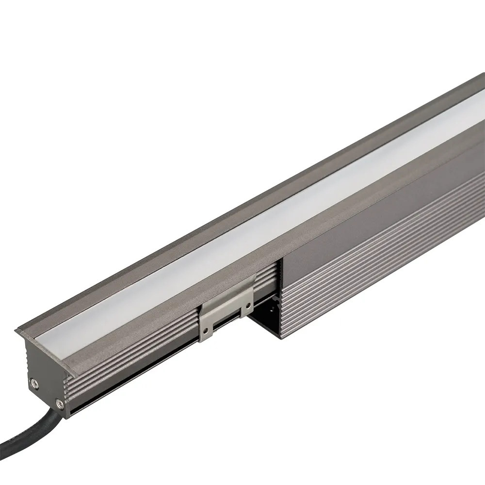 Встраиваемый светодиодный светильник для грунта и пола с монтажной чашей. Мощность 12Вт, световой поток 530лм, цвет ТЕПЛЫЙ 3000К. CRI(Ra)>80, угол 120°. Прямоугольный влагозащищенный корпус IP67, серебристый алюминий. Экран PMMA. Выдерживает нагрузку 300кг. Питание DC24V, 12Вт. Размер ДxШxВ 500x38x51мм. Установка в отверстие ДxШxВ 500x33.2x51мм. Допускается регулирование светового потока ШИМ.
