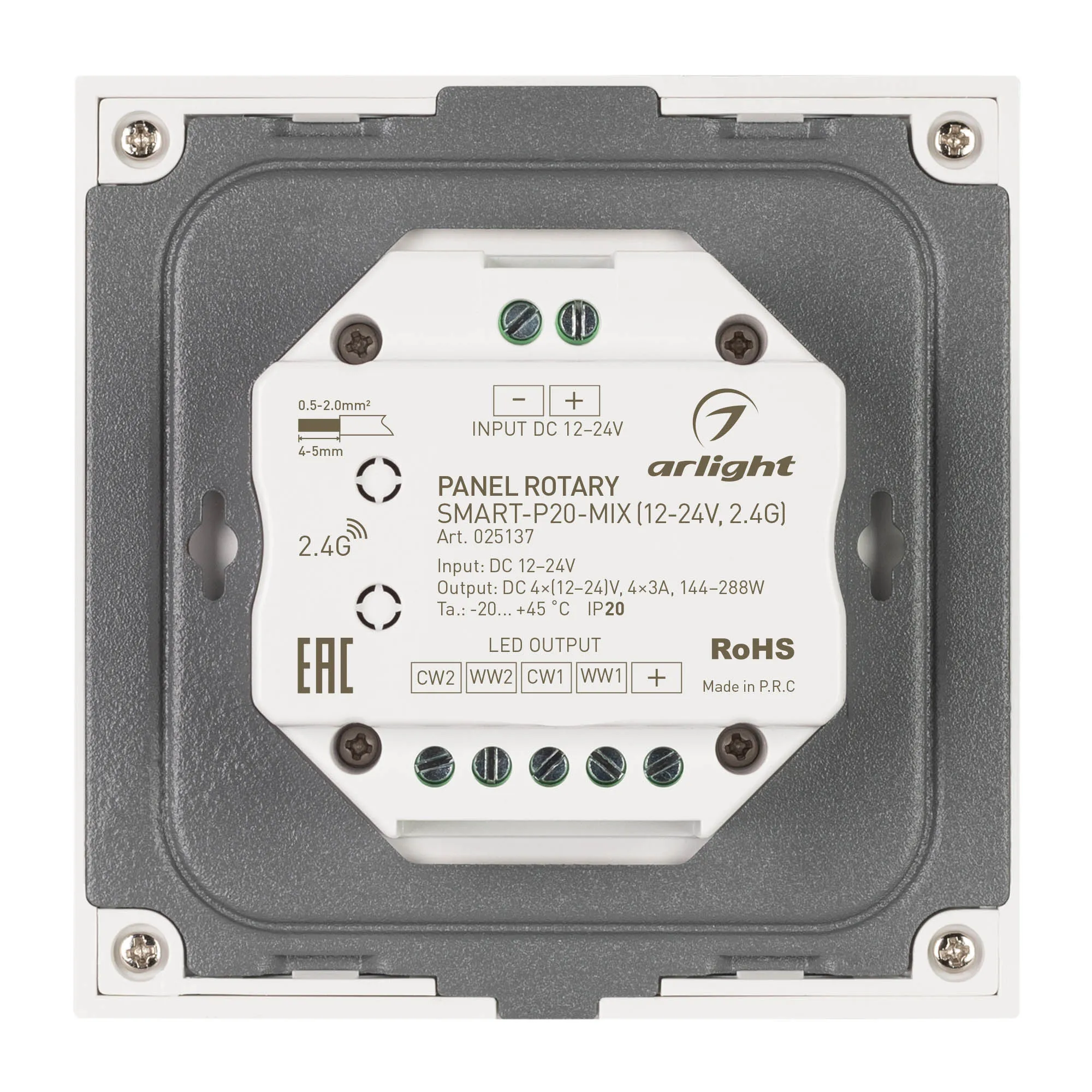 Панель Rotary SMART-P20-MIX (12-24V, 2.4G) (Arlight, IP20 Пластик, 5 лет)