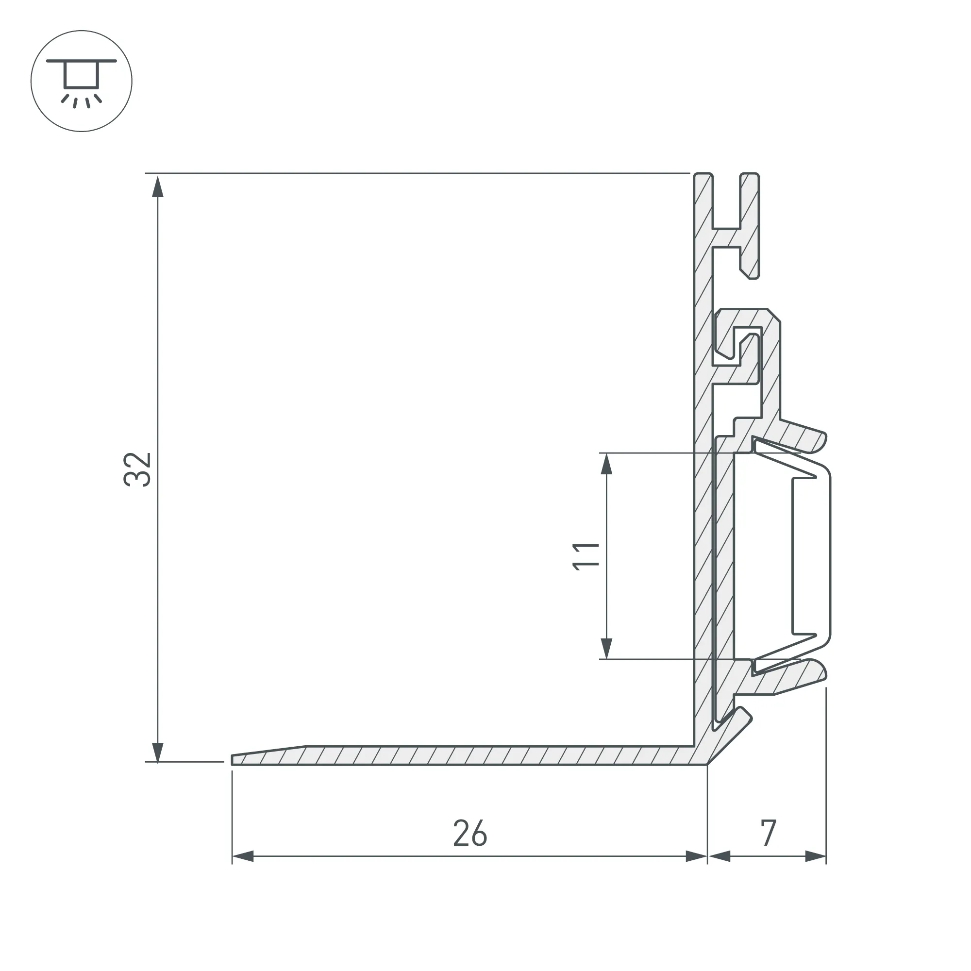Алюминиевый профиль для светодиодных лент и линеек, для подсветки потолочных ниш. Луч света направлен параллельно плоскости потолка, что позволяет отодвигать профиль в глубину ниши. В комплекте: основание, профиль, силиконовый уплотнительный шнур. Габаритные размеры (L×W×H): 2000x33x32 мм. Ширина площадки для ленты 11 мм. Экраны, заглушки и другие аксессуары приобретаются отдельно. Цена за 1 метр.