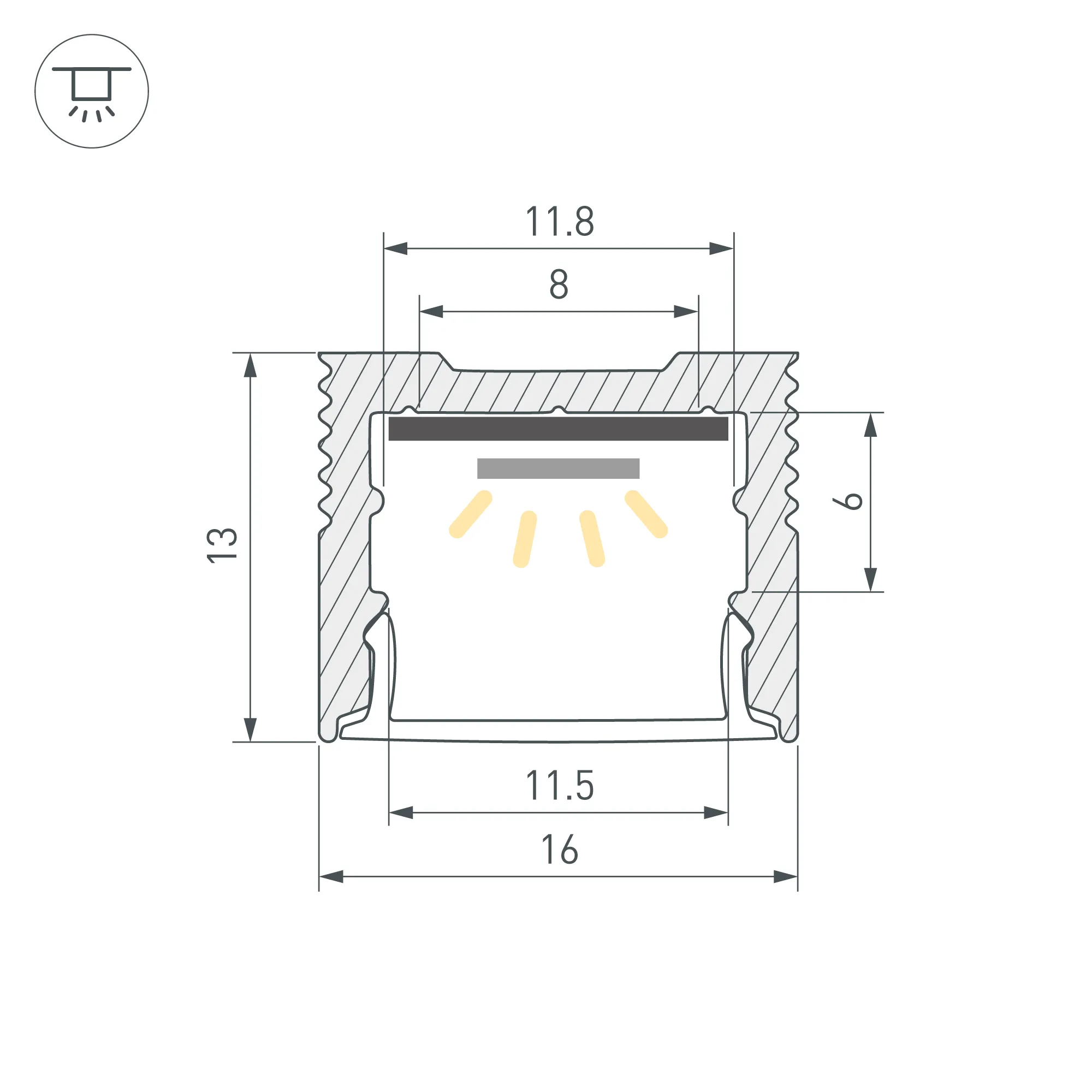 Комплект с экраном. Алюминиевый анодированный профиль для светодиодных лент и линеек. Габаритные размеры (L×W×H): 2500x16x13 мм. Ширина площадки для ленты 11,8 мм. Аксессуары приобретаются отдельно. Упакован в картонный тубус диаметром 31 мм.
