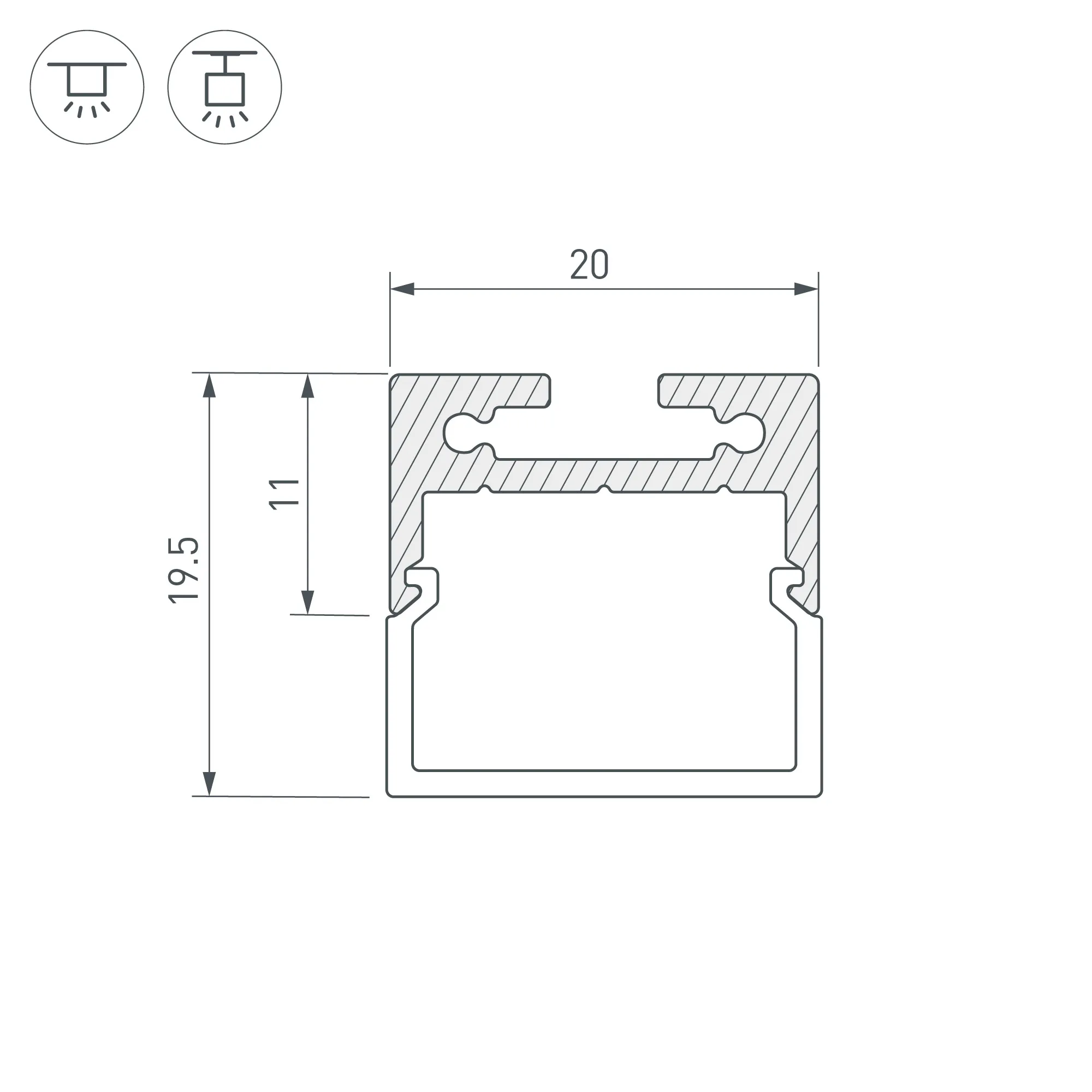 Комплект с экраном. Алюминиевый анодированный профиль для светодиодных лент и линеек. Габаритные размеры профиля (L×W×H): 2500x20x11 мм. Габаритные размеры профиля с экраном (L×W×H): 2500x20x19,5 мм. Ширина площадки для ленты 16,5 мм. Аксессуары приобретаются отдельно.