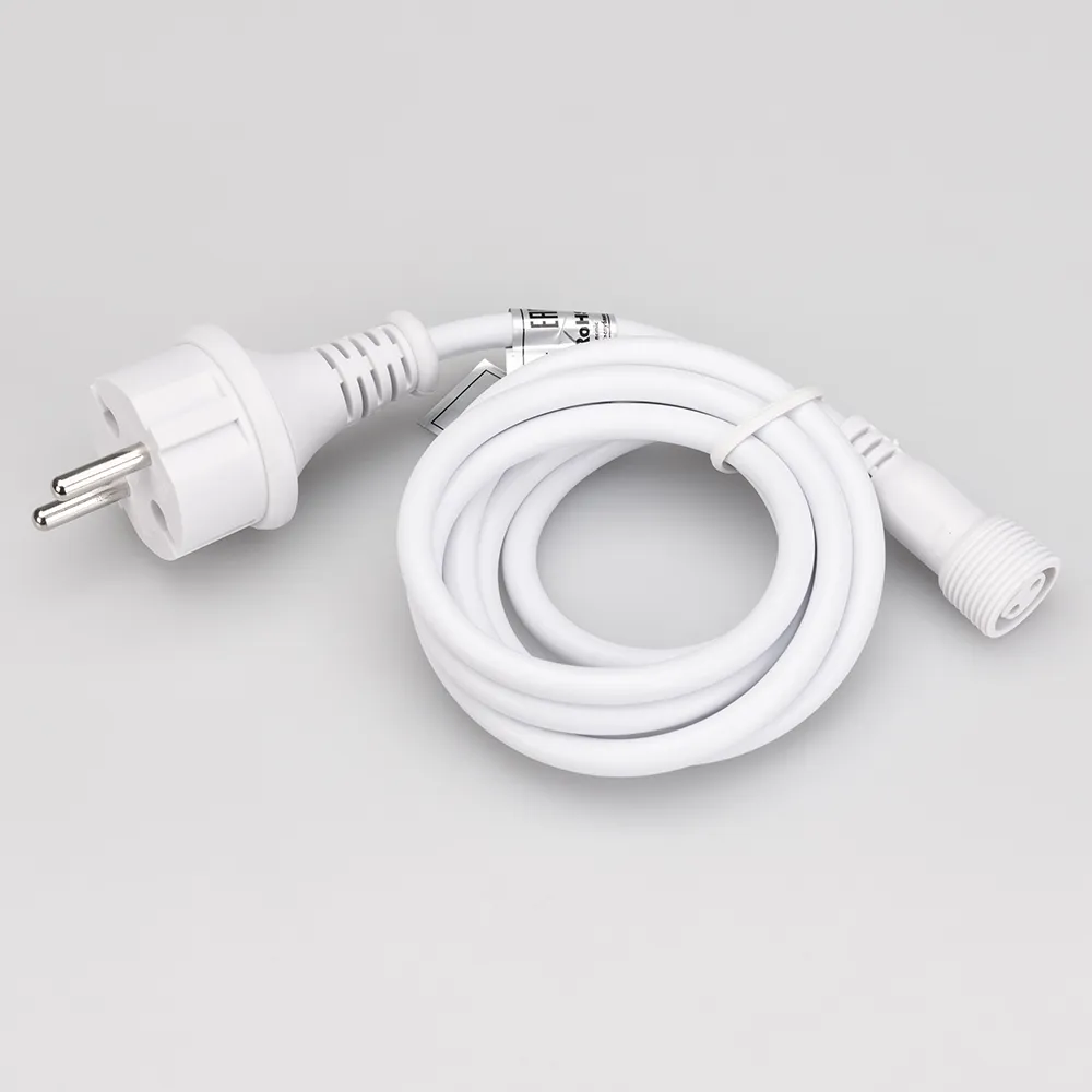 Шнур питания для светодиодных гирлянд "Тающая сосулька". Материал оболочки ПВХ. Цвет провода белый. В комплект входит: шнур питания с вилкой европейского стандарта (IP44), разъём подключения к гирлянде. Длина провода 1.5 метра.