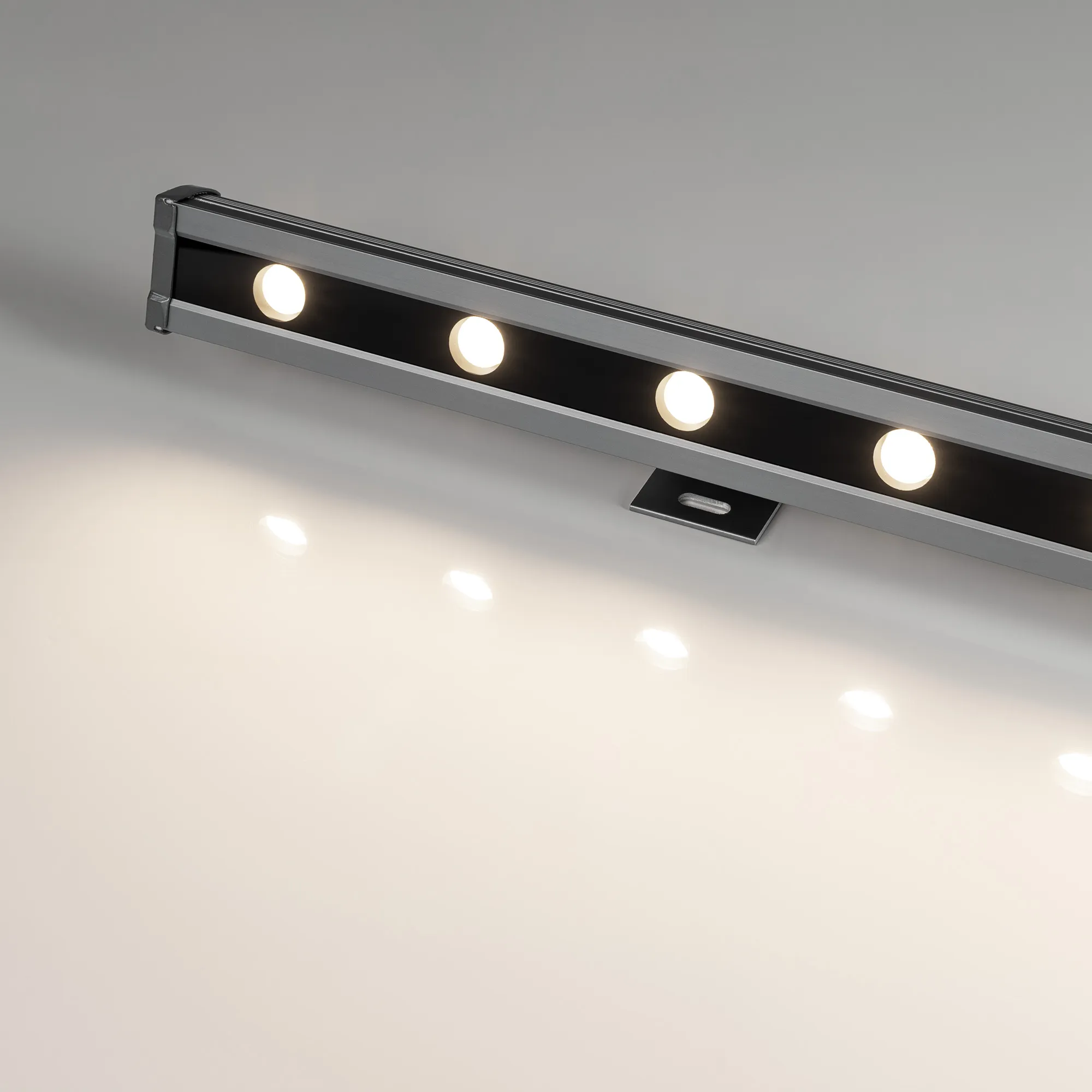 Линейный светодиодный прожектор "WALLWASHER. Мощность 48W, напряжение питания DC 24V. Количество светодиодов 12 штук. Цвет светодиодов RGB-Day(4000K) (4 кристалла в каждом светодиоде), управление по протоколу DMX512, угол рассеивания 15x45°. Корпус: алюминиевый сплав и армированное стекло. Цвет корпуса серый, степень влагозащиты IP65. Габариты 1000x54x35мм.