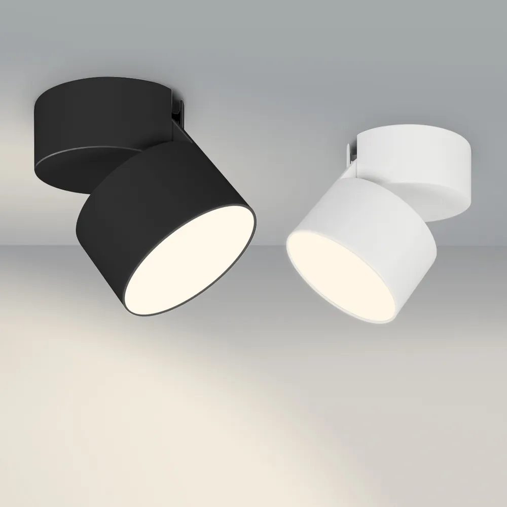 Накладной откидной светильник 16Вт, черный круглый корпус. Цвет ТЕПЛЫЙ 3000K, св.поток 1080лм, CRI(Ra)>90, угол 110°. Размер светильника Ф95x55мм, размер чаши Ф95x45мм. Питание AC220-240V, 16Вт, драйвер встроенный (400mA, 30-42V). Поворачивается вокруг своей оси на 350° и отклоняется на 90°.Пульсация <0,3%