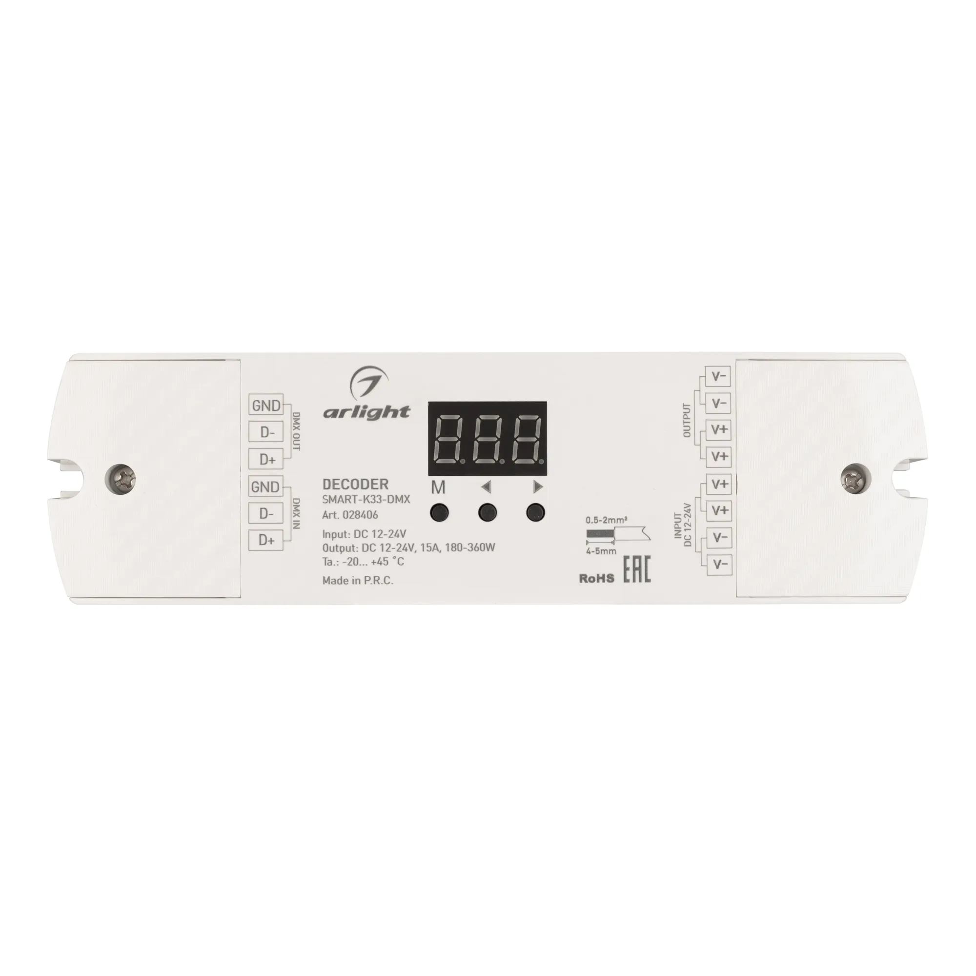 Декодер SMART-K33-DMX (12-24V, 1x15A) (Arlight, IP20 Пластик, 5 лет)
