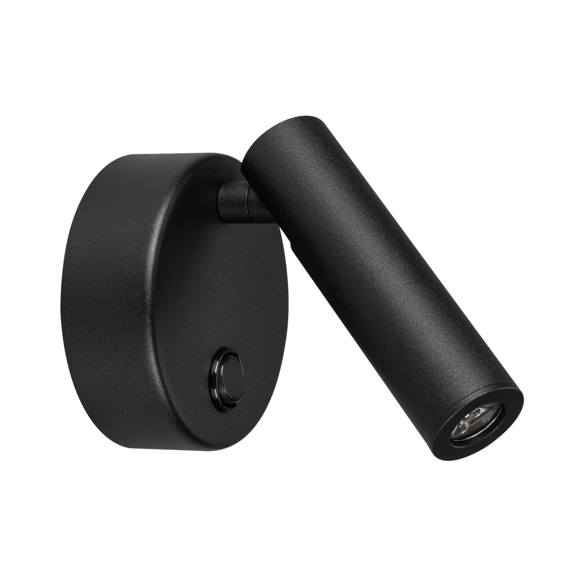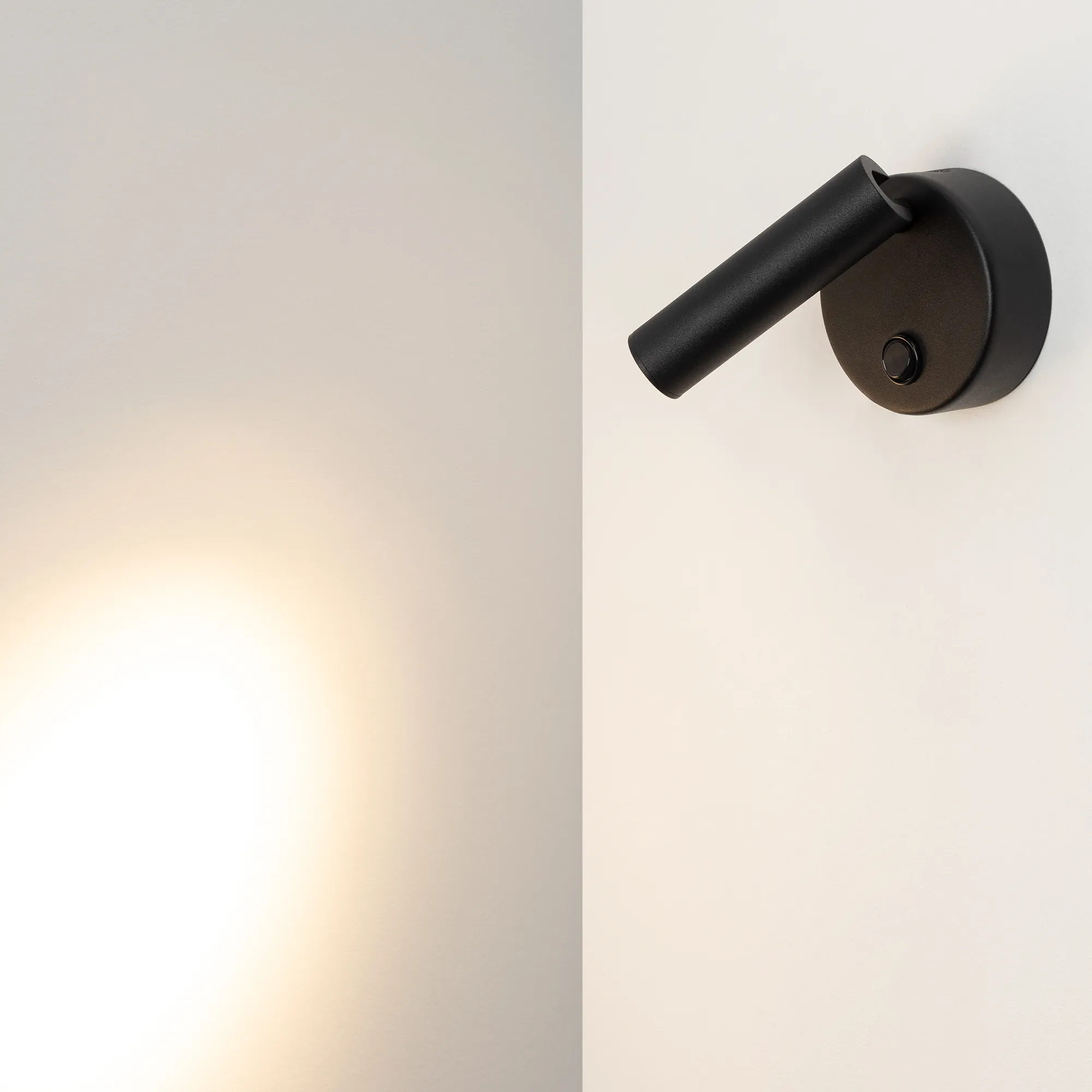 Накладной настенный светильник 3Вт,черный алюминиевый корпус. Цвет ТЕПЛЫЙ БЕЛЫЙ 3000K, св.поток 200лм, CRI(Ra)>80, угол 20°.Размер Основание Ф90x31мм, Светоизлучатель Ø30×110 мм.. IP20. Питание AC220-240V, 3Вт, встроенный драйвер 2,5-4,5В, 700 мА.
