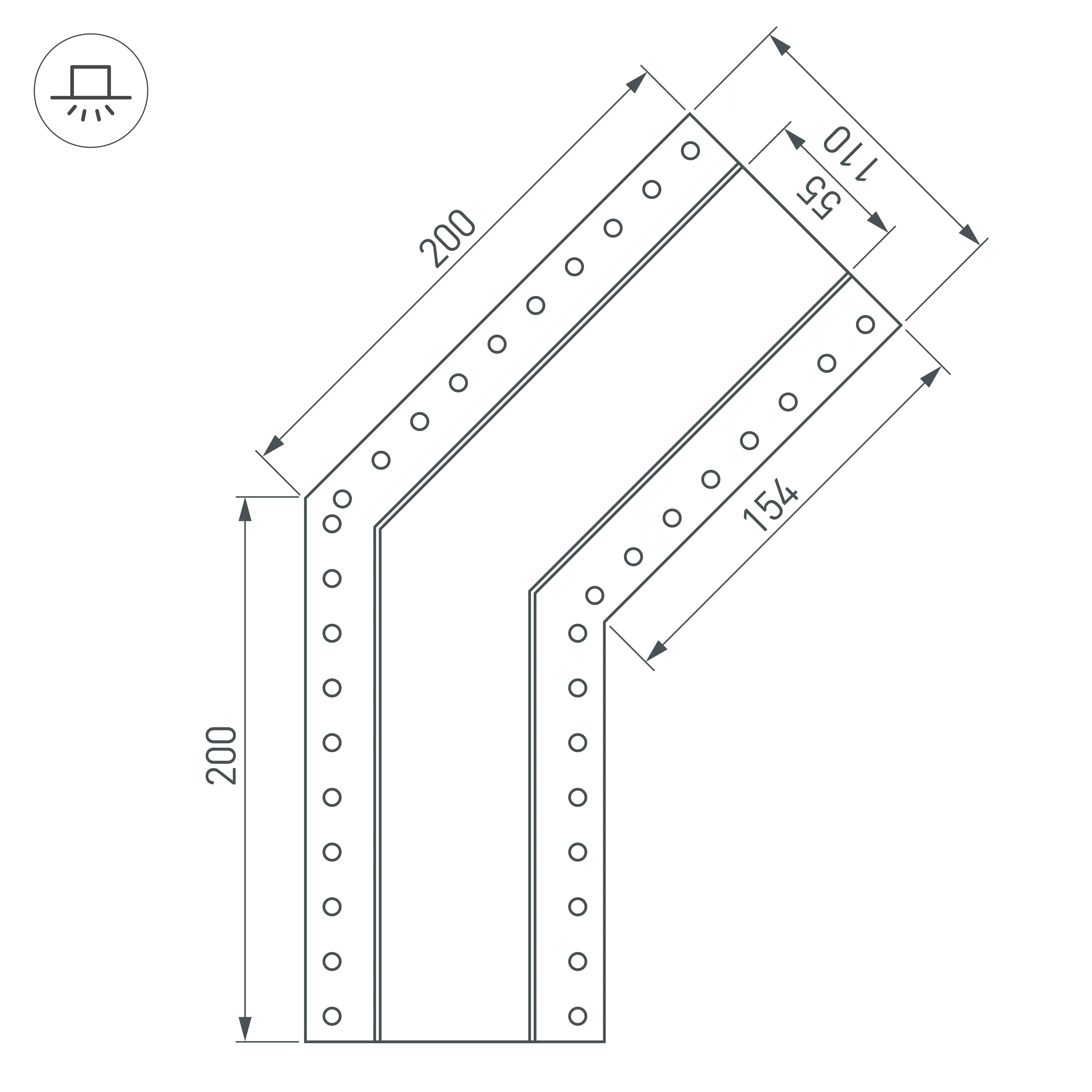 Угол в сборе, для профиля SL-LINIA55-FANTOM. Угол 135°. В комплекте угол с экраном, соединители, винты, шестигранный ключ.