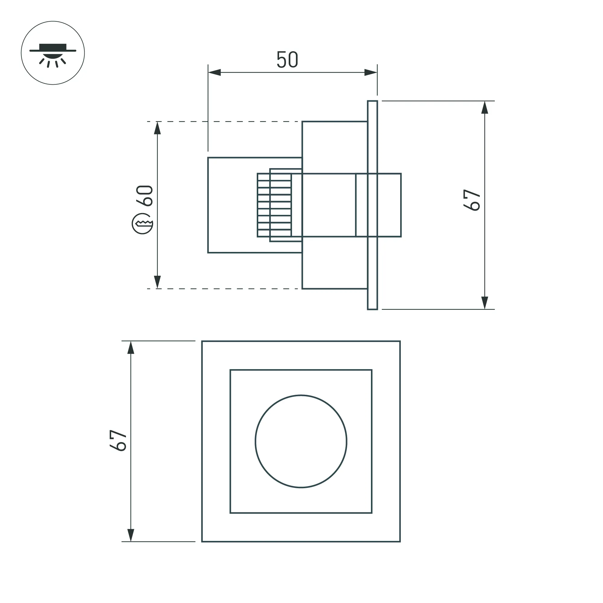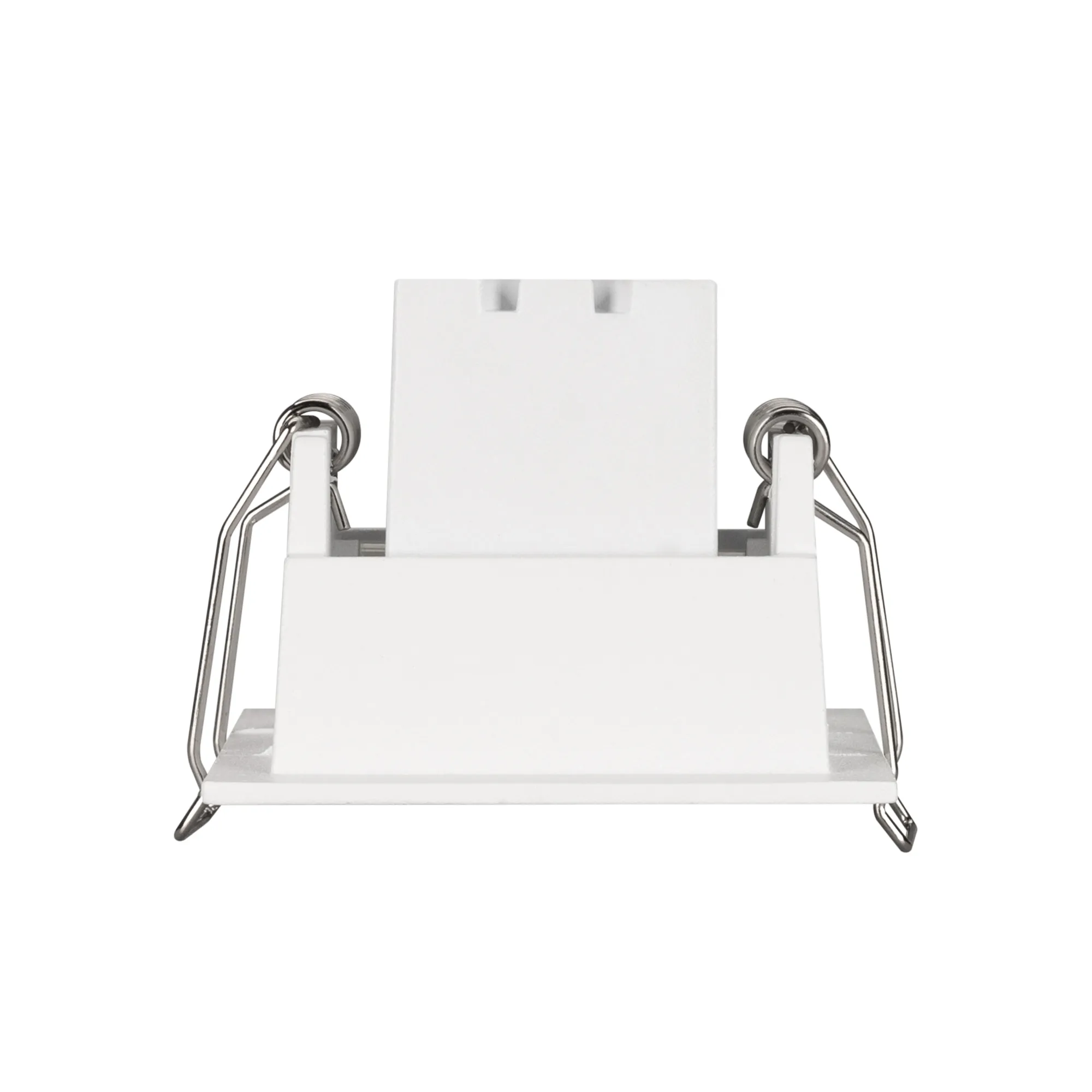 Встраиваемый поворотный светильник. Мощность 3 Вт, св. поток 180 лм, 60 лм/Вт, теплый 3000 K, CRI>98, угол 30°, напряжение питания 230 В. Белый прямоугольный корпус из алюминия, экран PMMA, степень защиты IP20. Размер: длина 67 мм, ширина 67 мм, высота 50 мм. Монтаж встраиваемый, установочное отверстие длина 60 мм, ширина 60 мм. Драйвер 3-12 В, 500 мА, пульсация <1%.