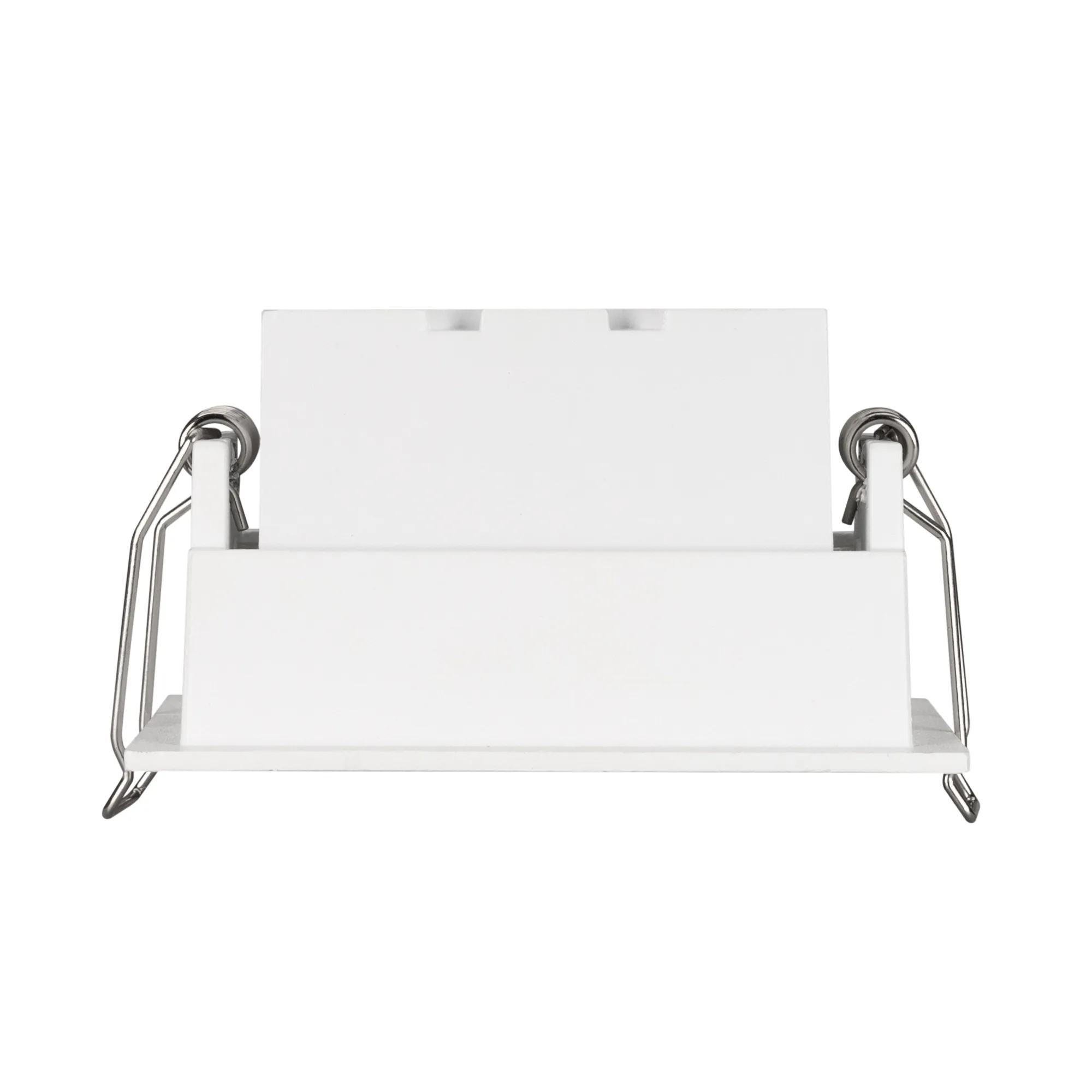 Встраиваемый поворотный светильник. Мощность 5 Вт, св. поток 375 лм, 75 лм/Вт, теплый 3000 K, CRI>98, угол 30°, напряжение питания 230 В. Белый прямоугольный корпус из алюминия, экран PMMA, степень защиты IP20. Размер: длина 90 мм, ширина 67 мм, высота 50 мм. Монтаж встраиваемый, установочное отверстие длина 85 мм, ширина 60 мм. Драйвер 3-9 В, 700 мА, пульсация <1%.