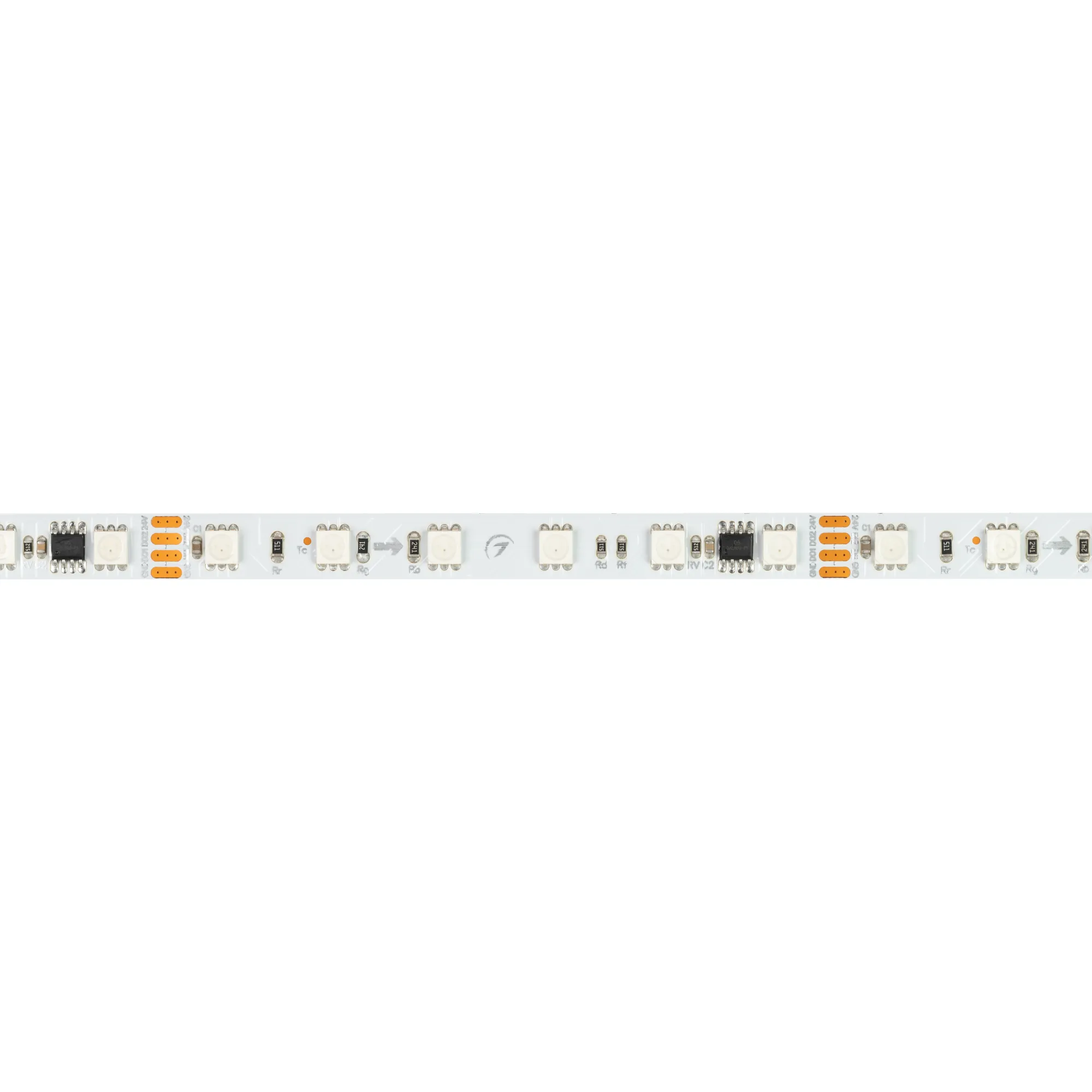 Светодиодная лента SPI серии B60 с микросхемой GS8206. Светодиоды SMD 5060, 60 шт/м, 10 pixels на 1 м (50 pixels на 5 м), 1 pixel = 6 светодиодов, белая плата шириной 10 мм, скотч 3М. Цвет RGB, угол 120°. Питание 24 В, мощность 15 Вт/м (75 Вт на 5 м). Размеры 5000x10x2.1 мм. Мин. отрезок 100 мм, 6 светодиодов. Цена за 1 м.