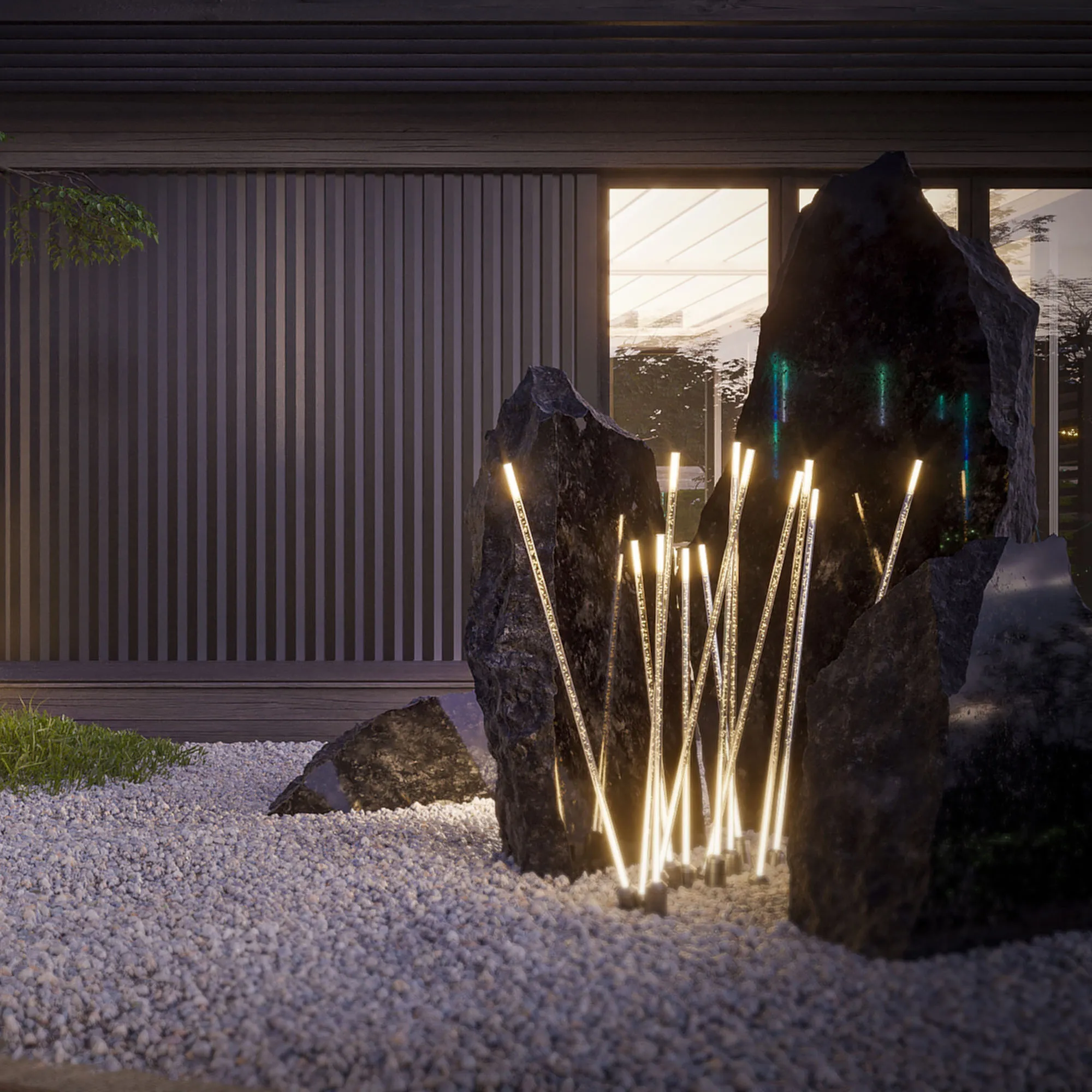 Декоративный ландшафтный светильник. Мощность 3 Вт, св. поток 40 лм, 13 лм/Вт, теплый 3000 K, CRI>80, угол 180°, напряжение питания 24 В. Темно-cерый фигурный корпус из алюминия, экран PMMA+PC, степень защиты IP65. Размер: диаметр 15 мм, высота 1200 мм. Монтаж в грунт. ВНИМАНИЕ! Светильник не поддерживает регулирование светового потока ШИМ.