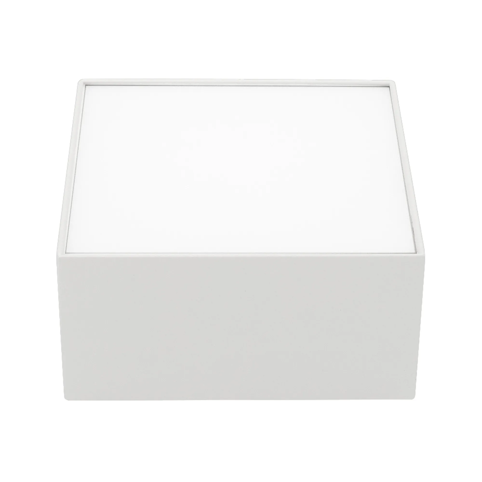 Поставка под заказ от 100 шт. Накладной светильник. Мощность 13 Вт, св. поток 540-680 лм, 52 лм/Вт, дневной 4000 K, CRI>90, угол 120°, напряжение питания 230 В. Белый квадратный корпус из алюминия, экран PC, степень защиты IP40. Размер: длина 120 мм, ширина 120 мм, высота 59 мм. Монтаж накладной. Драйвер 20-40 В, 300 мА, пульсация <5%.