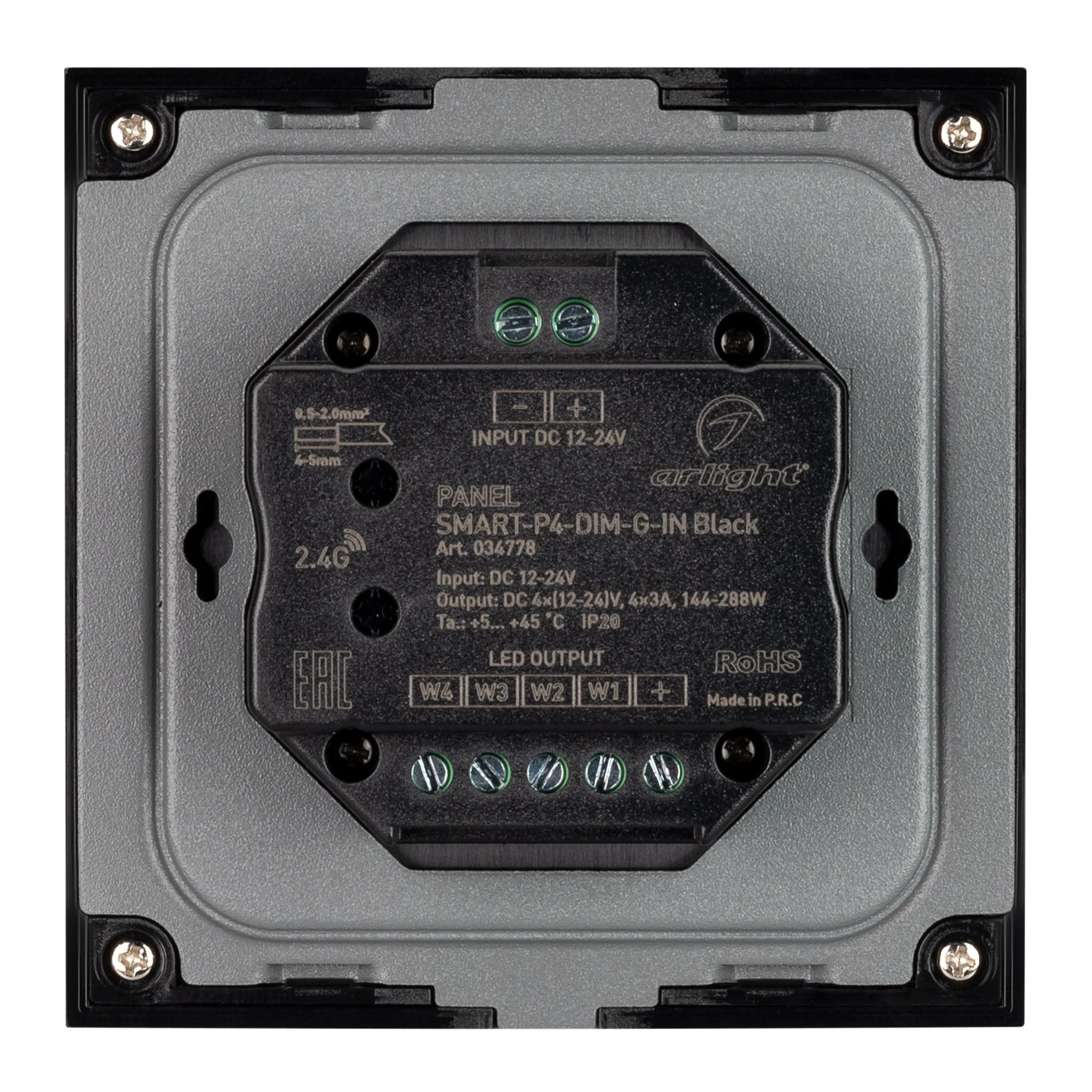 Панель SMART-P4-DIM-G-IN Black (12-24V, 4x3A, Sens, 2.4G) (Arlight, IP20 Пластик, 5 лет)
