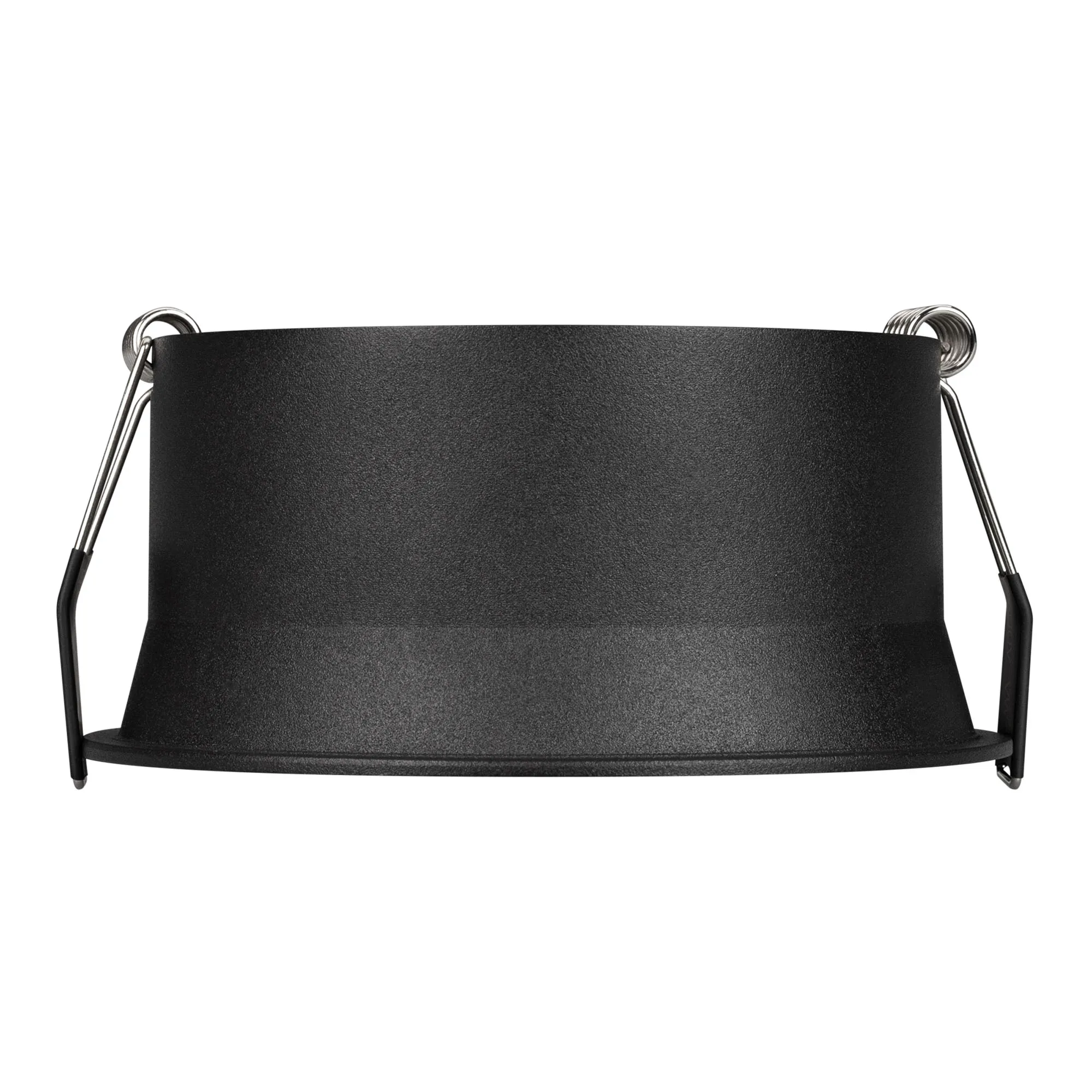 Встраиваемый светильник даунлайт. Мощность 16 Вт, св. поток 960 лм, 60 лм/Вт, дневной 4000 K, CRI>90, угол 85°, напряжение питания 230 В. Чёрный круглый корпус из алюминия, степень защиты IP20. Размер: диаметр 125 мм, высота 60 мм. Монтаж встраиваемый, установочное отверстие: диаметр 115 мм. Драйвер 27-42 В, 400 мА, пульсация <2%.
