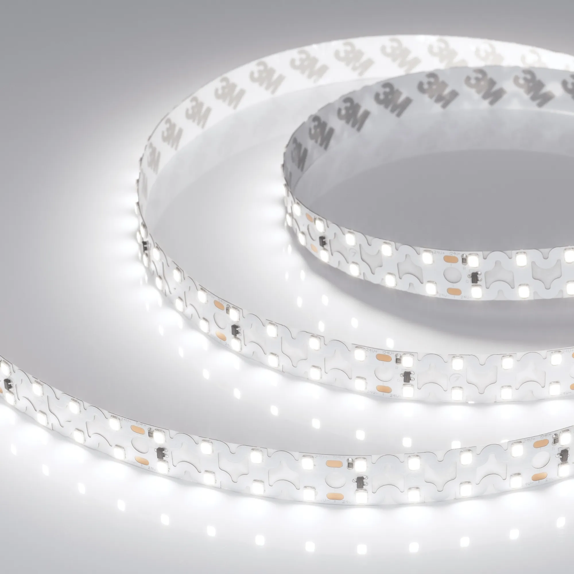 Гибкая светодиодная лента RZ серии A160 с фигурной платой в форме волны. Светодиоды SMD 2835, 160 шт/м, белая плата шириной 15 мм, скотч 3М. Цвет БЕЛЫЙ 6000K, индекс цветопередачи CRI>85, угол 120°. Питание 24 В, мощность 19.2 Вт/м (96 Вт на 5 м). Размеры 5000х15х1.5 мм. Мин. отрезок 50 мм, 8 светодиодов. Цена за 1 м.