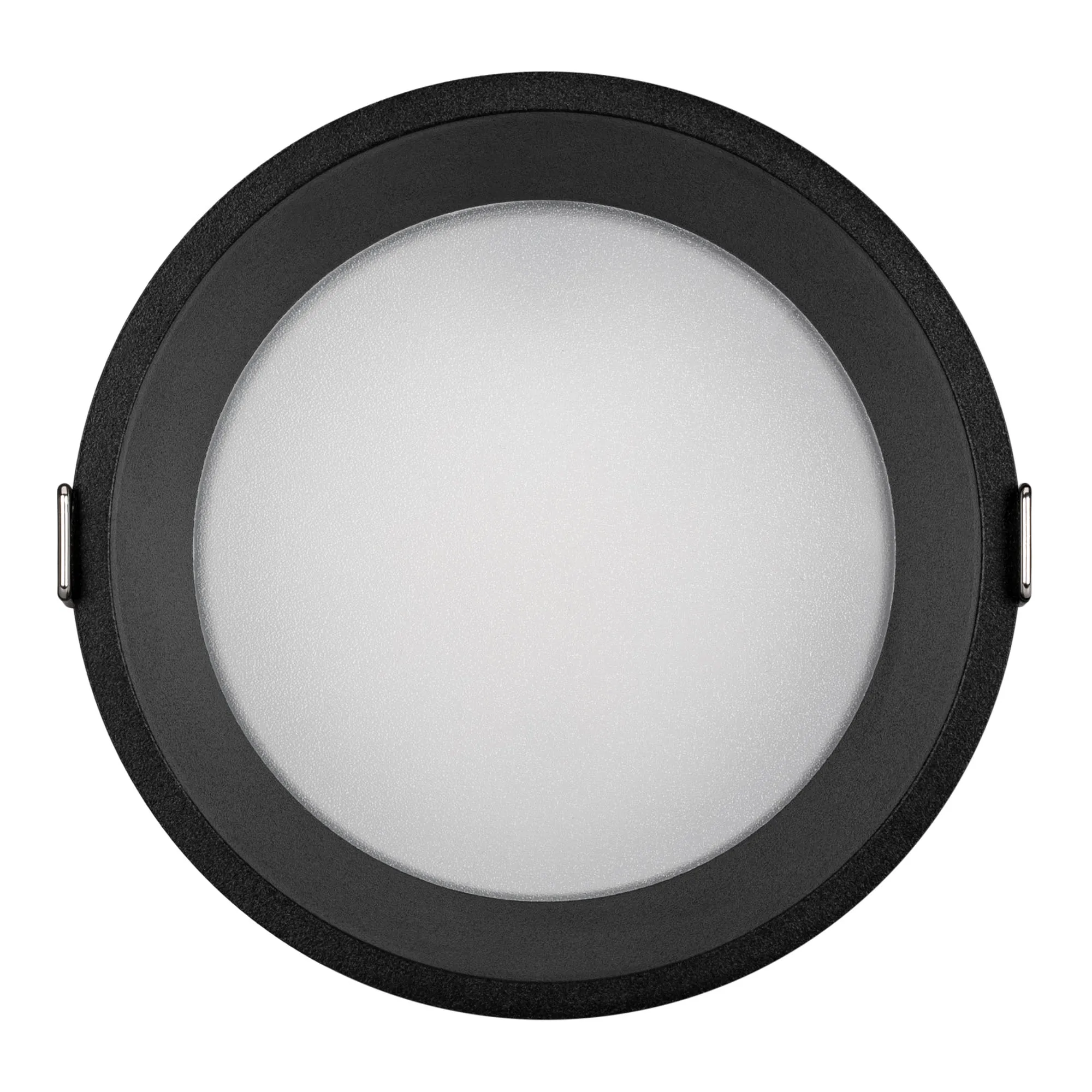 Встраиваемый светильник даунлайт. Мощность 16 Вт, св. поток 882 лм, 61 лм/Вт, тёплый 3000 K, CRI>90, угол 85°, напряжение питания 230 В. Чёрный круглый корпус из алюминия, степень защиты IP20. Размер: диаметр 125 мм, высота 60 мм. Монтаж встраиваемый, установочное отверстие: диаметр 115 мм. Драйвер 27-42 В, 400 мА, пульсация <2%.