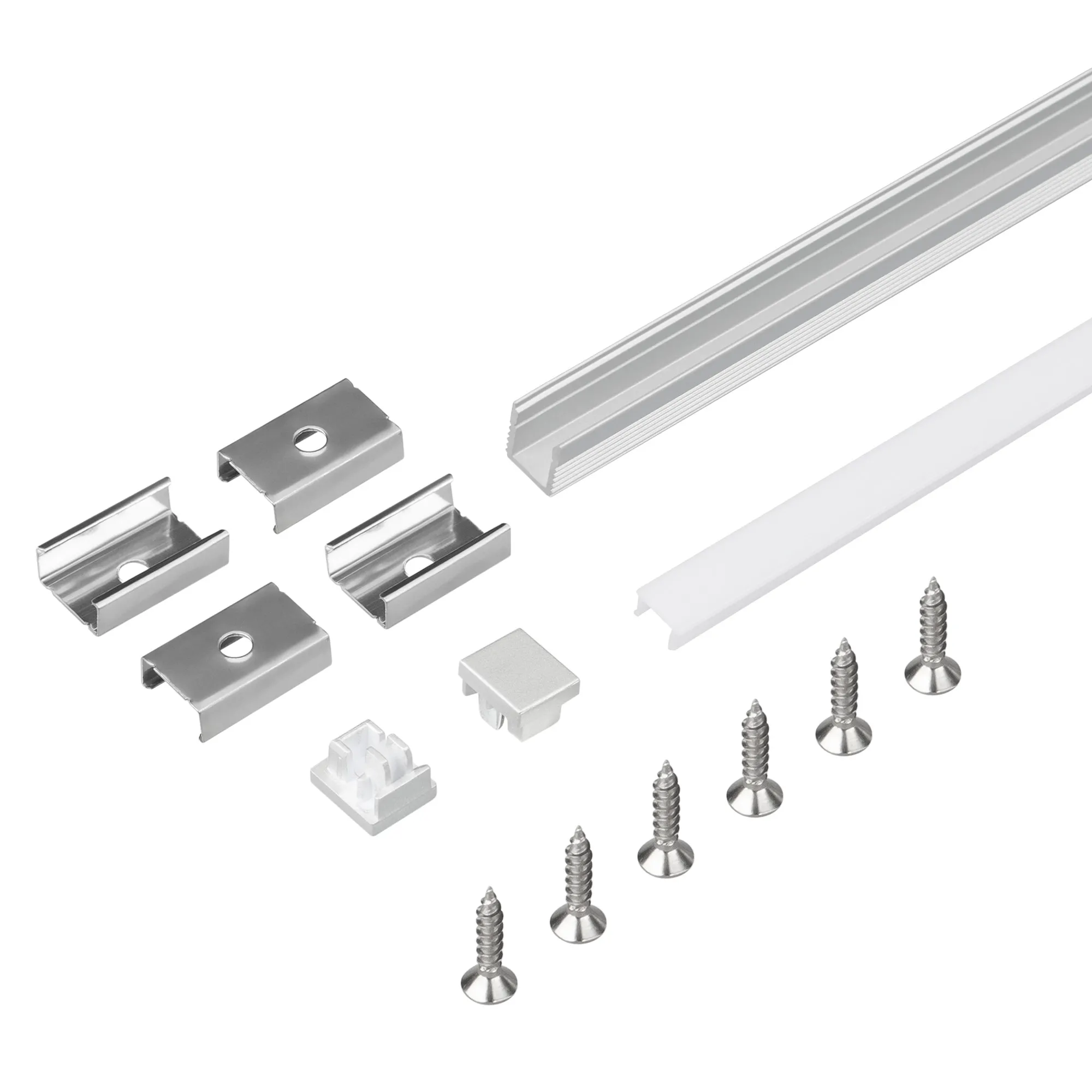 Цена за комплект: профиль - 2 м, экран - 2 м, глухая заглушка - 2 шт., держатель - 4 шт.