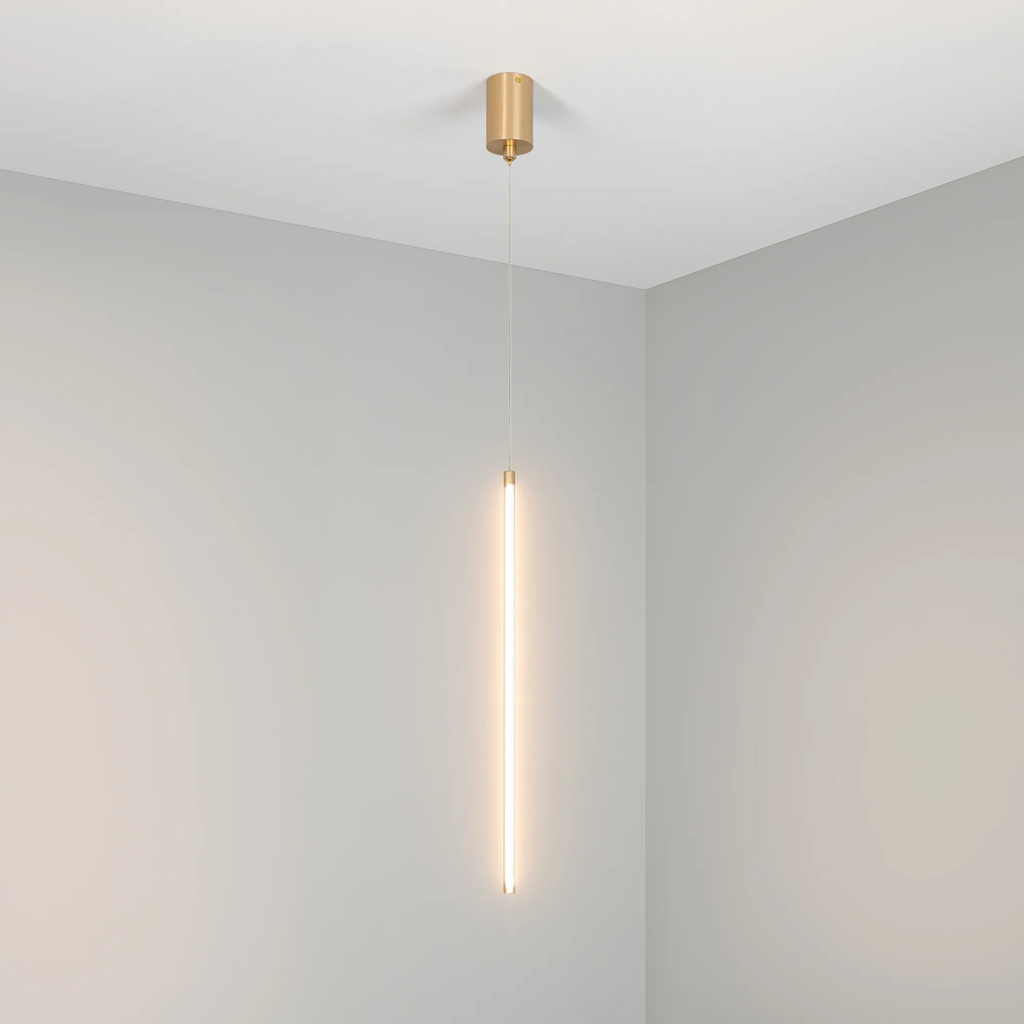 Поставка под заказ от 50 шт. Декоративный подвесной светильник. Мощность 10 Вт, св. поток 410 лм, 40 лм/Вт, теплый 3000 K, CRI>90, угол 120°, напряжение питания 230 В. Золотой корпус из алюминия и металла, экран из силикона, степень защиты IP20. Размер: длина 590 мм, диаметр 16 мм, габариты чаши: длина 124 мм, диаметр 70 мм , длина троса 1500 мм. Монтаж подвесной. Драйвер встроенный 27-48 В, 250 мА., пульсация <1%