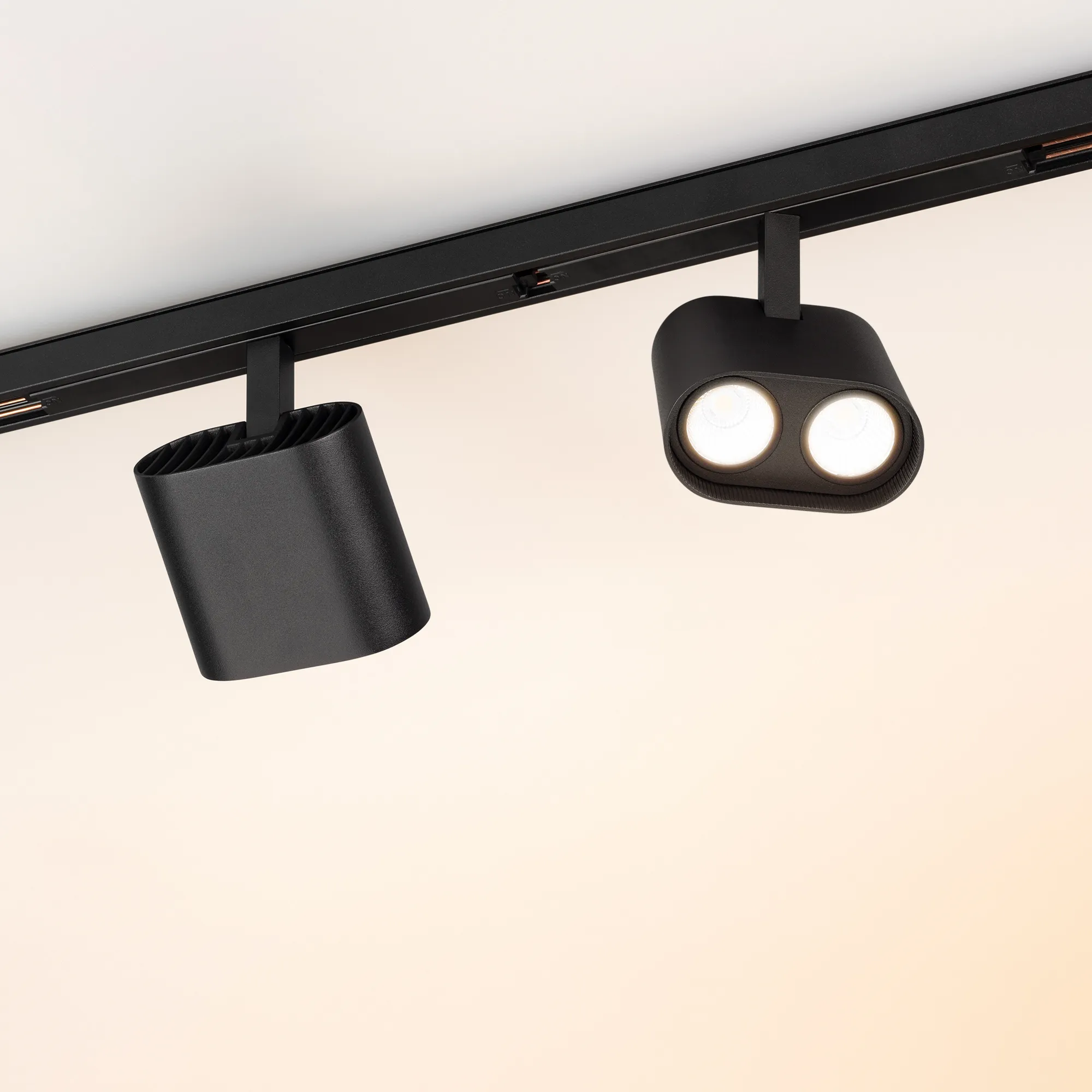 Светильник для магнитных треков MAG-ORIENT шириной 26 мм. Мощность 12 Вт, св. поток 900лм, 75 лм/Вт, теплый 3000 K, CRI>90, угол 40°, напряжение питания 48 В. Черный фигурный корпус из металл, экран поликарбонат, степень защиты IP20.Размеры LxWxH 204x89x140 мм. Монтаж на трек MAG-ORIENT. Пульсация <1%.