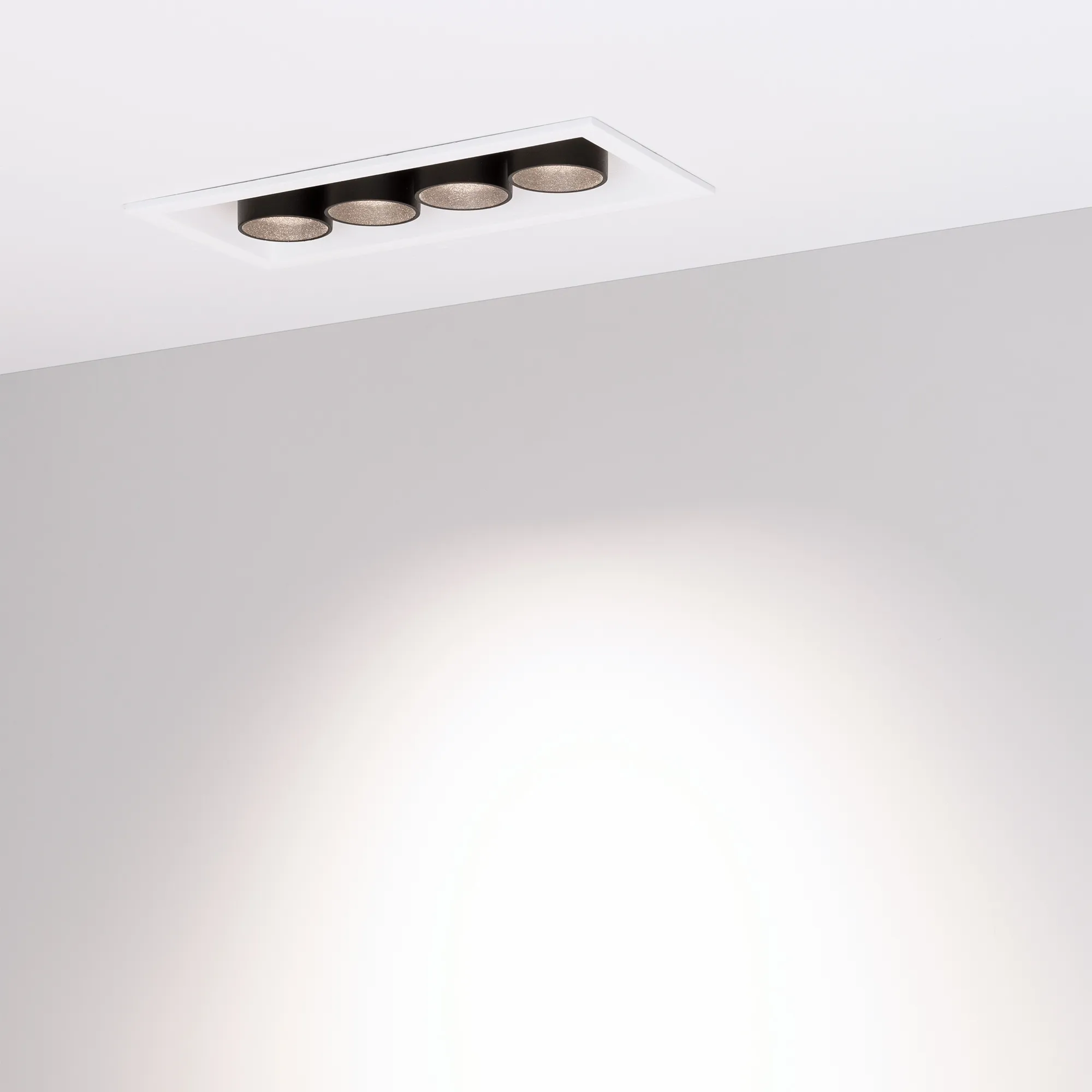 Встраиваемый поворотный светильник. Мощность 10 Вт, св. поток 734 лм, 75 лм/Вт, дневной 4000 K, CRI>98, угол 30°, напряжение питания 230 В. Чёрный прямоугольный корпус из алюминия, экран PMMA, степень защиты IP20. Размер: длина 150 мм, ширина 67 мм, высота 50 мм. Монтаж встраиваемый, установочное отверстие длина 145 мм, ширина 60 мм. Драйвер 9-14 В, 700 мА, пульсация <1%.