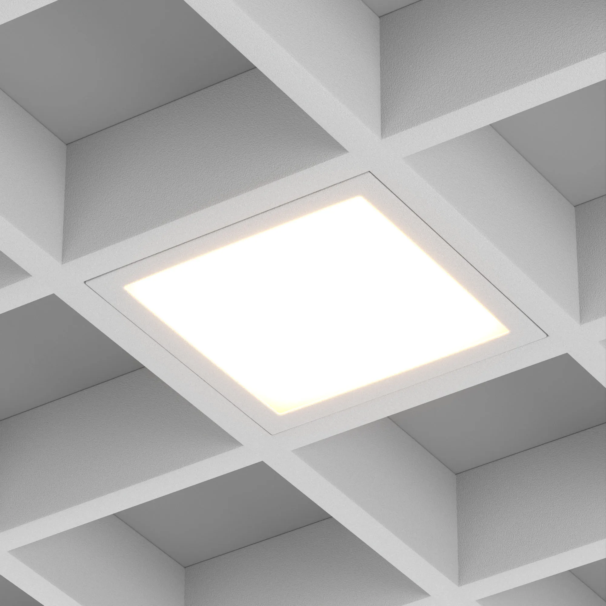 Встраиваемый светильник даунлайт для установки в потолки Грильято с размером ячейки 100х100 мм и высотой направляющих 30, 40 или 50 мм. Мощность 12 Вт, св. поток 1210 лм, 101 лм/Вт, тёплый 3000 K, CRI>90, угол 90°, напряжение питания 230 В. Белый квадратный корпус из алюминия, степень защиты IP40. Размер: длина 90 мм, ширина 90 мм, высота 40 мм. Монтаж встраиваемый, установочное отверстие: длина 90 мм, ширина 90 мм. Драйвер 24-42 В, 300 мА, пульсация <2%.