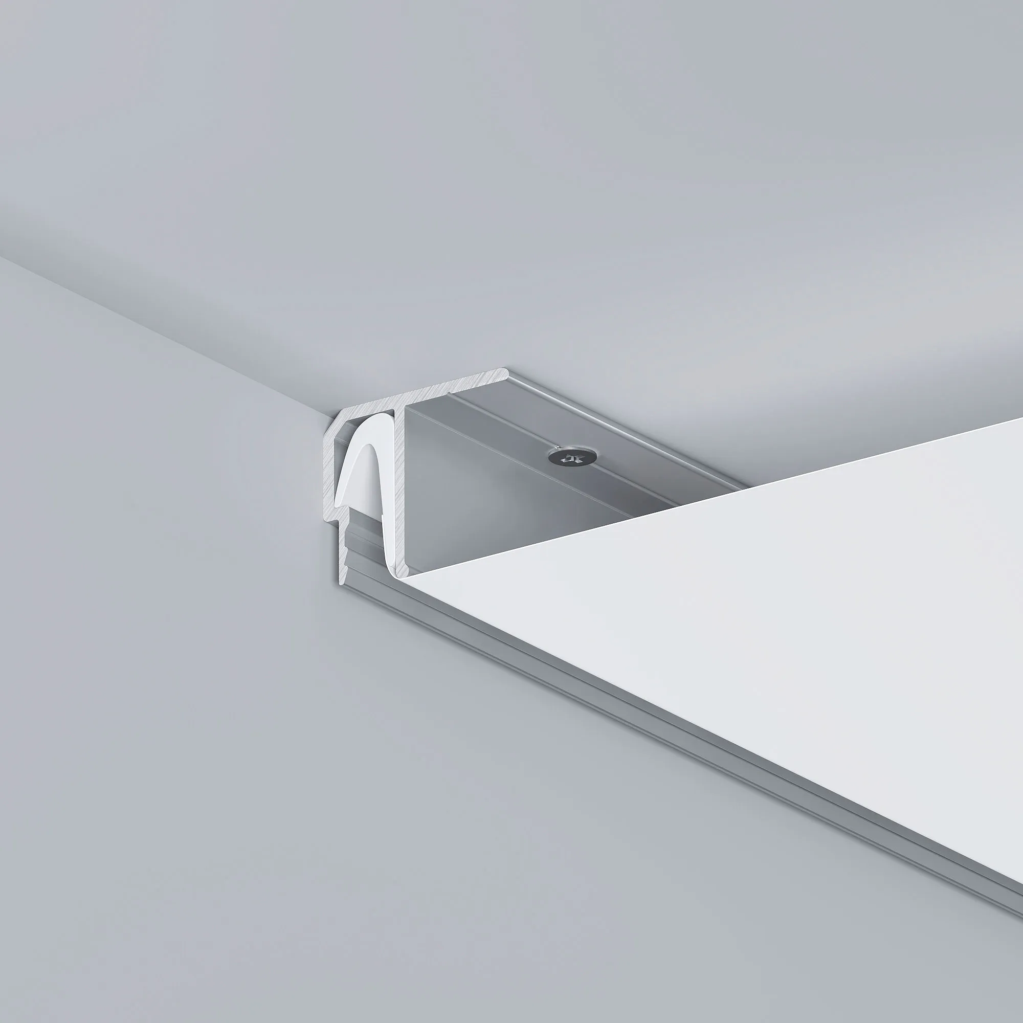 Алюминиевый профиль для установки натяжных потолков. Гарпунная система монтажа. Крепится к потолку или другой горизонтальной поверхности. Габаритные размеры (L×W×H): 2500x21,5x18,55мм. Цена за 1 метр.