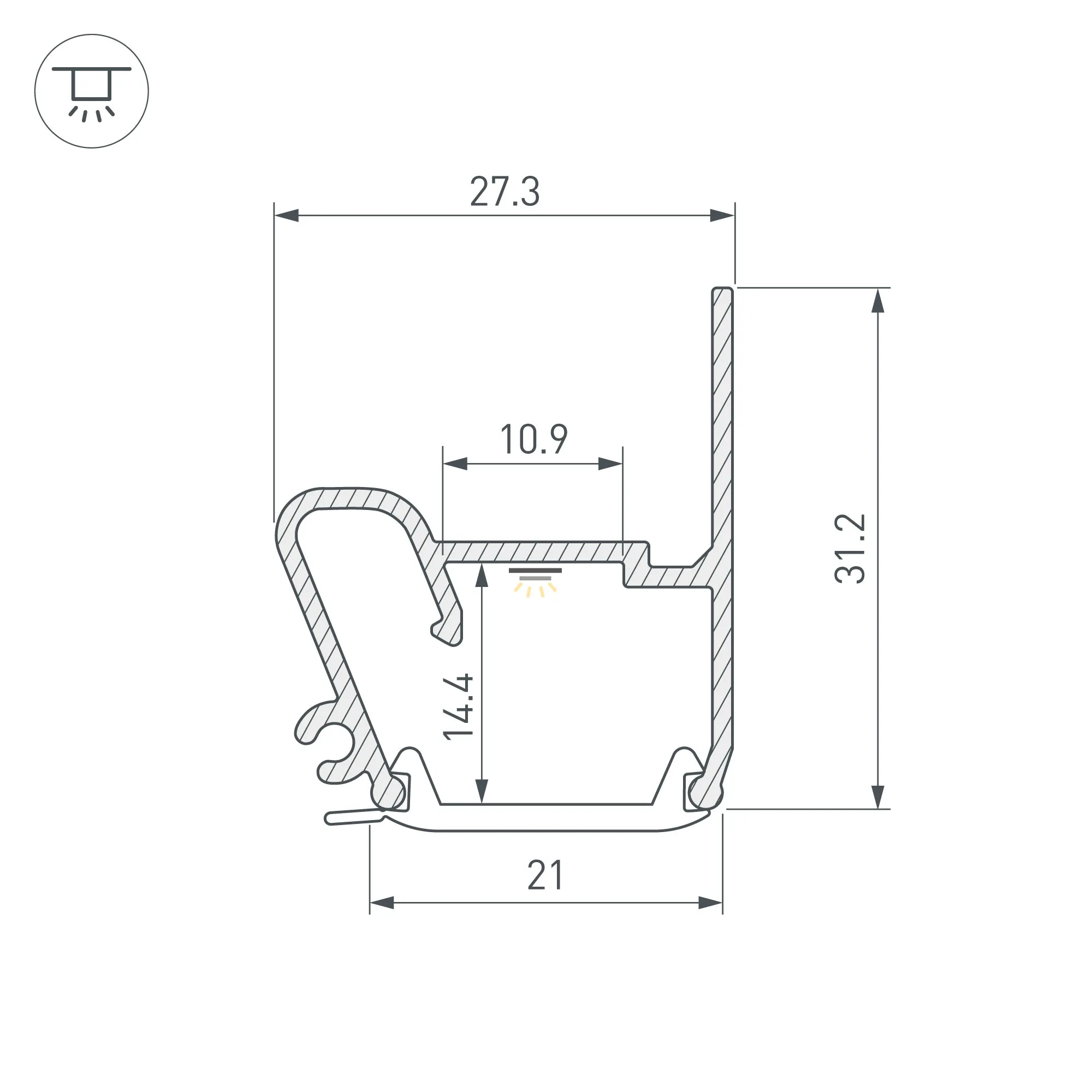 Алюминиевый профиль для натяжных потолков (боковая линия). Решение 2-в-1 - каркас для крепления натяжного потолка и профиль для установки светодиодной ленты. Для дизайнерских решений «линии света» в натяжных потолках. Монтируется к стене накладным способом. Ширина площадки для ленты 10,9 мм. Длина 2000 мм. Цена за 1 м.