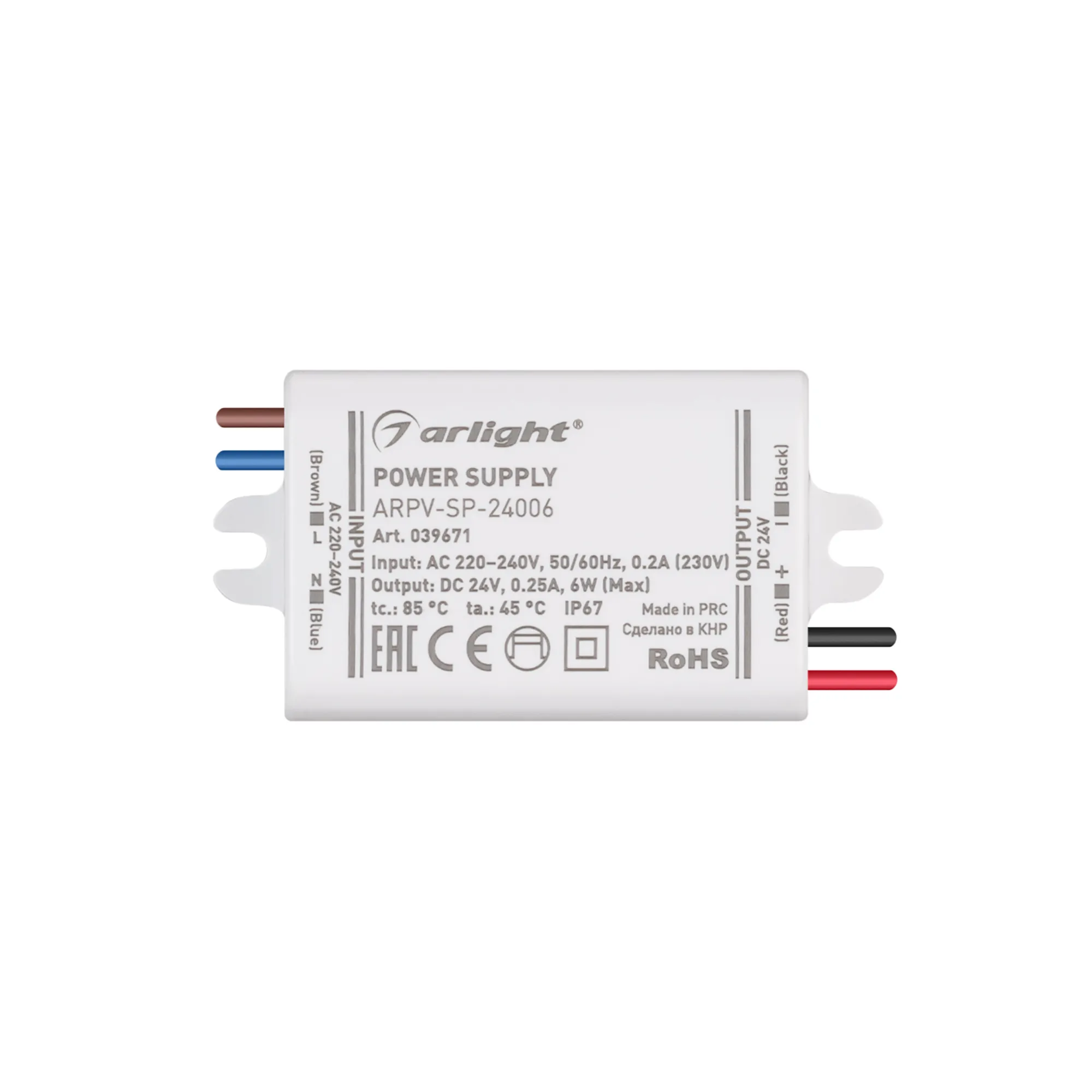 В магазине Arled Market Вы можете купить "Блок питания ARPV-SP-24006 (24V, 0.25A, 6W) (Arlight, IP67 Пластик, 5 лет)"