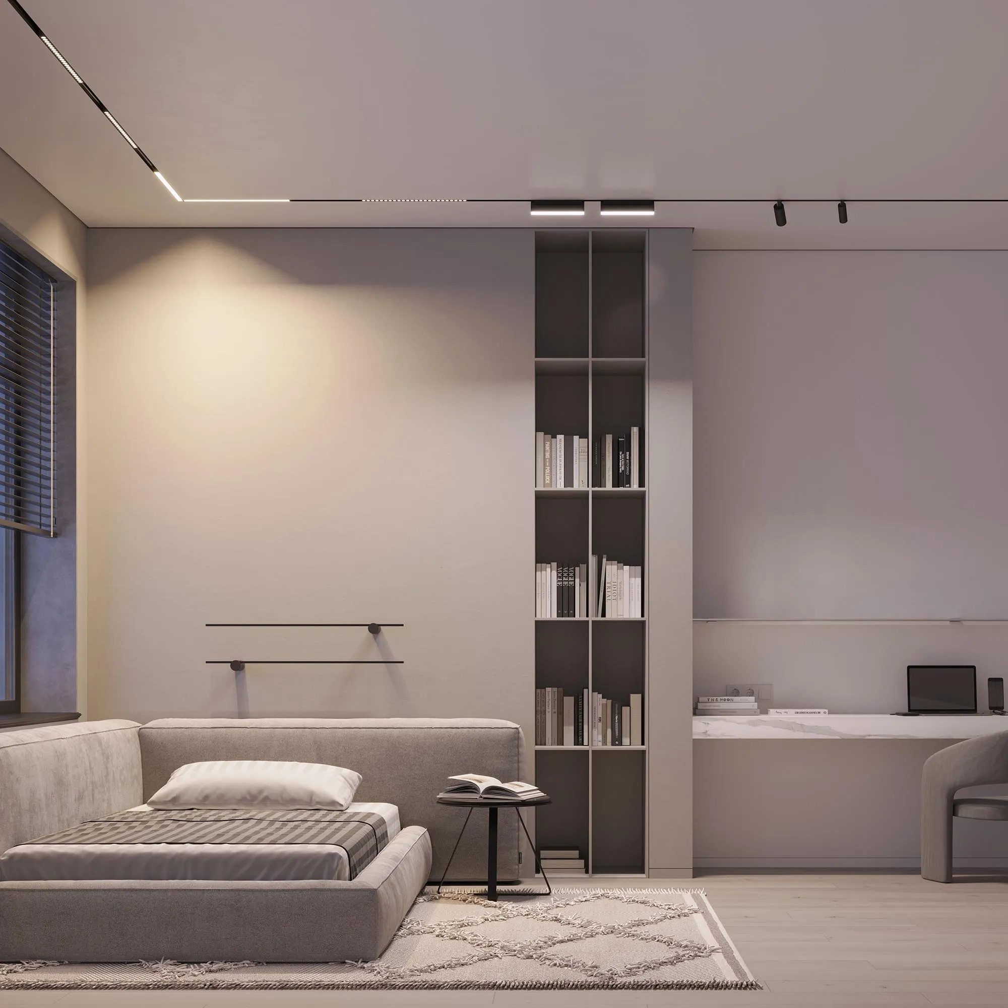 Светильник для магнитных треков MAG-ORIENT шириной 26 мм с управлением DALI(DT8) и изменяемой цветовой температурой. Мощность 12 Вт, св. поток 640-710 лм, 53-59 лм/Вт, изменяемая цветовая температура 2700-6500 K, CRI>90, угол 80°, напряжение питания 48 В. Черный прямоугольный корпус из металл, экран поликарбонат, степень защиты IP20. Размер: длина 232 мм, ширина 23 мм, высота 99 мм. Монтаж на трек MAG-ORIENT. Пульсация <1%.
