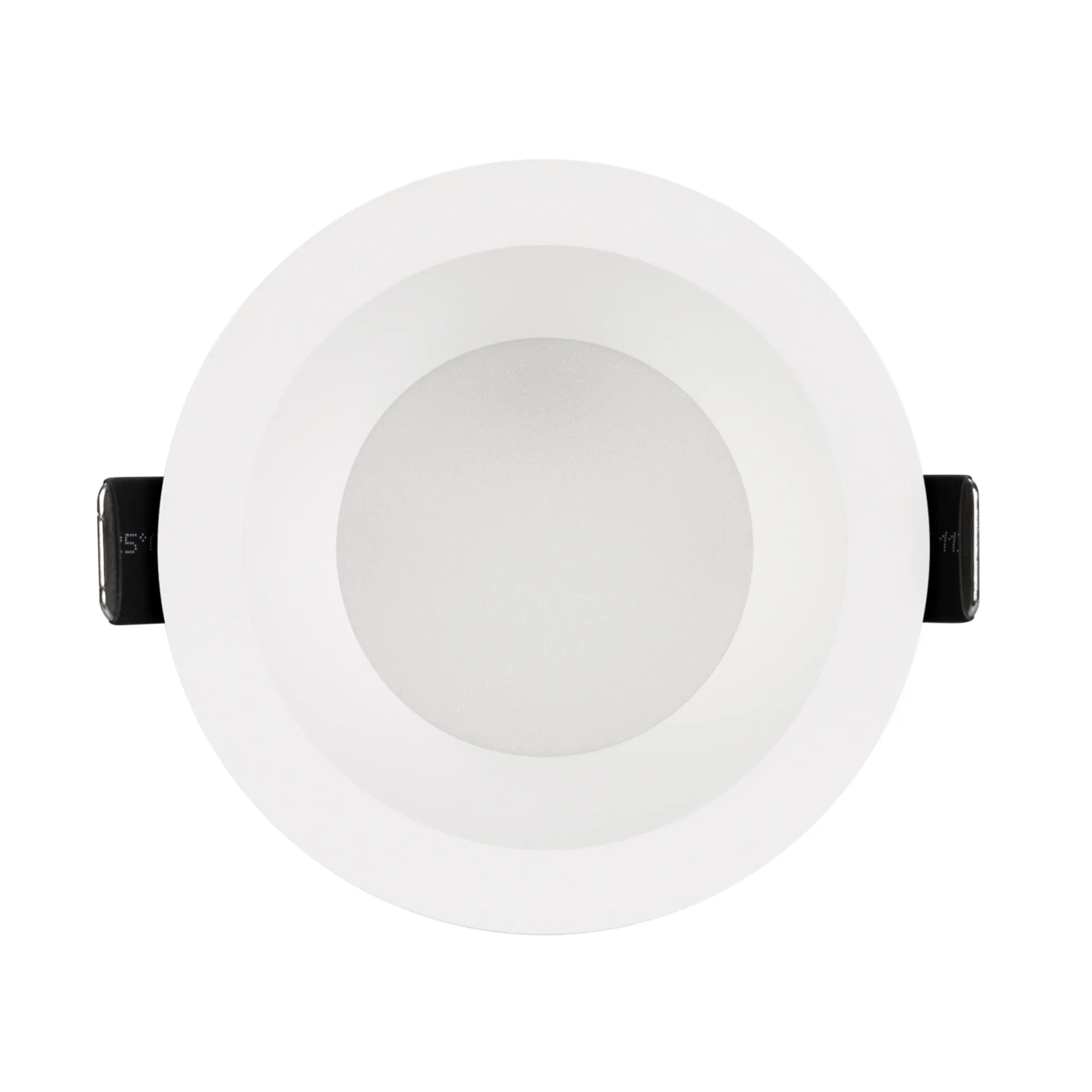 Встраиваемый светильник даунлайт. Мощность 8 Вт, св. поток 610 лм, 76 лм/Вт, тёплый 3000 K, CRI>90, угол 85°, напряжение питания 230 В. Белый круглый корпус из алюминия, степень защиты IP54. Размер: диаметр 84 мм, высота 49 мм. Монтаж встраиваемый, установочное отверстие: диаметр 75 мм. Драйвер IP54, 30-45 В, 200 мА, пульсация <3%.