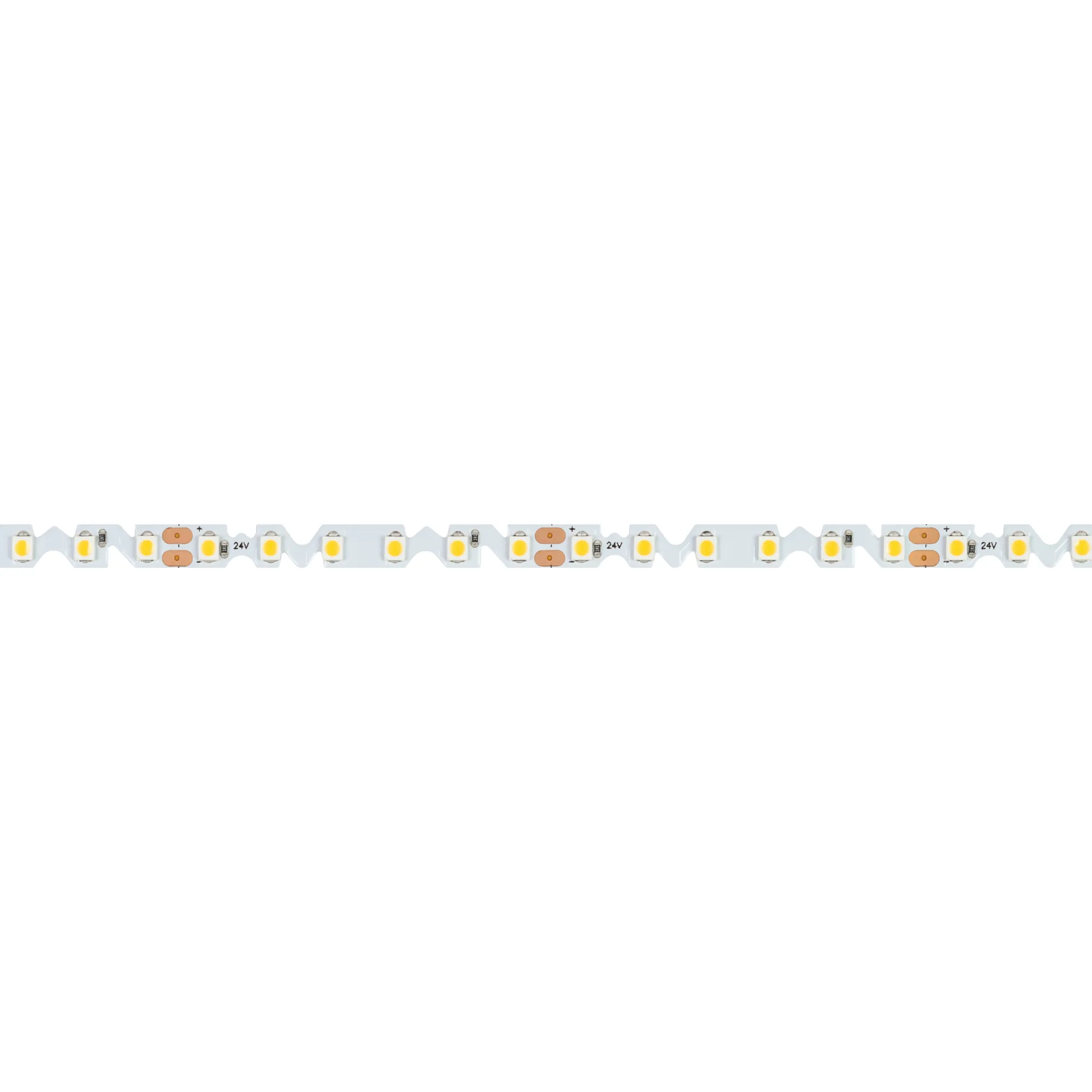 Гибкая светодиодная лента RZ серии A120 с фигурной платой в форме волны, легко изгибается на плоскости. Светодиоды SMD 2835, 120 шт/м, белая плата шириной 6 мм, скотч 3М. Цвет ТЕПЛЫЙ 3500K, индекс цветопередачи CRI>90, угол 120°. Питание 24 В, мощность 9.6 Вт/м (48 Вт на 5 м). Размеры 5000х6х1.3 мм. Мин. отрезок 50 мм, 6 светодиодов. Цена за 1 м. Обязательна установка на профиль.