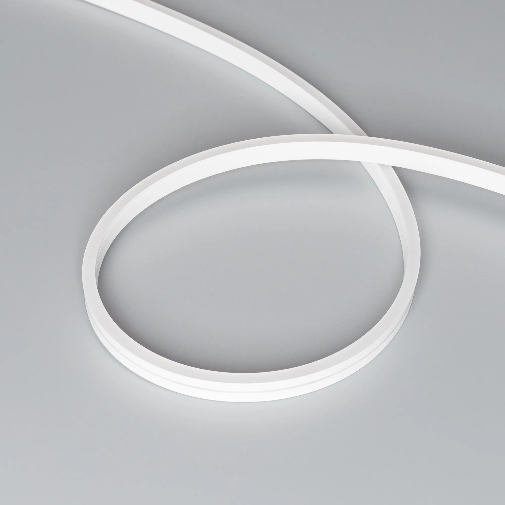 Гибкая герметичная лента (неон серии MOONLIGHT), сечение 6×12 мм. Светодиоды SMD 2835 120 шт/м. Цвет свечения ДНЕВНОЙ (4000 К), индекс цветопередачи CRI>90, световой поток 280 лм/м, угол излучения 112°. Мощность 9.6 Вт/м, питание 24 В. Класс пылевлагозащиты IP65. Размеры 5000×6×12 мм. Мин. отрезок 50 мм. Горизонтальный изгиб SIDE, минимальный радиус изгиба 30 мм. Вывод кабеля с двух сторон. Катушка 5 м. Цена за 1 м. Гарантия 3 года.