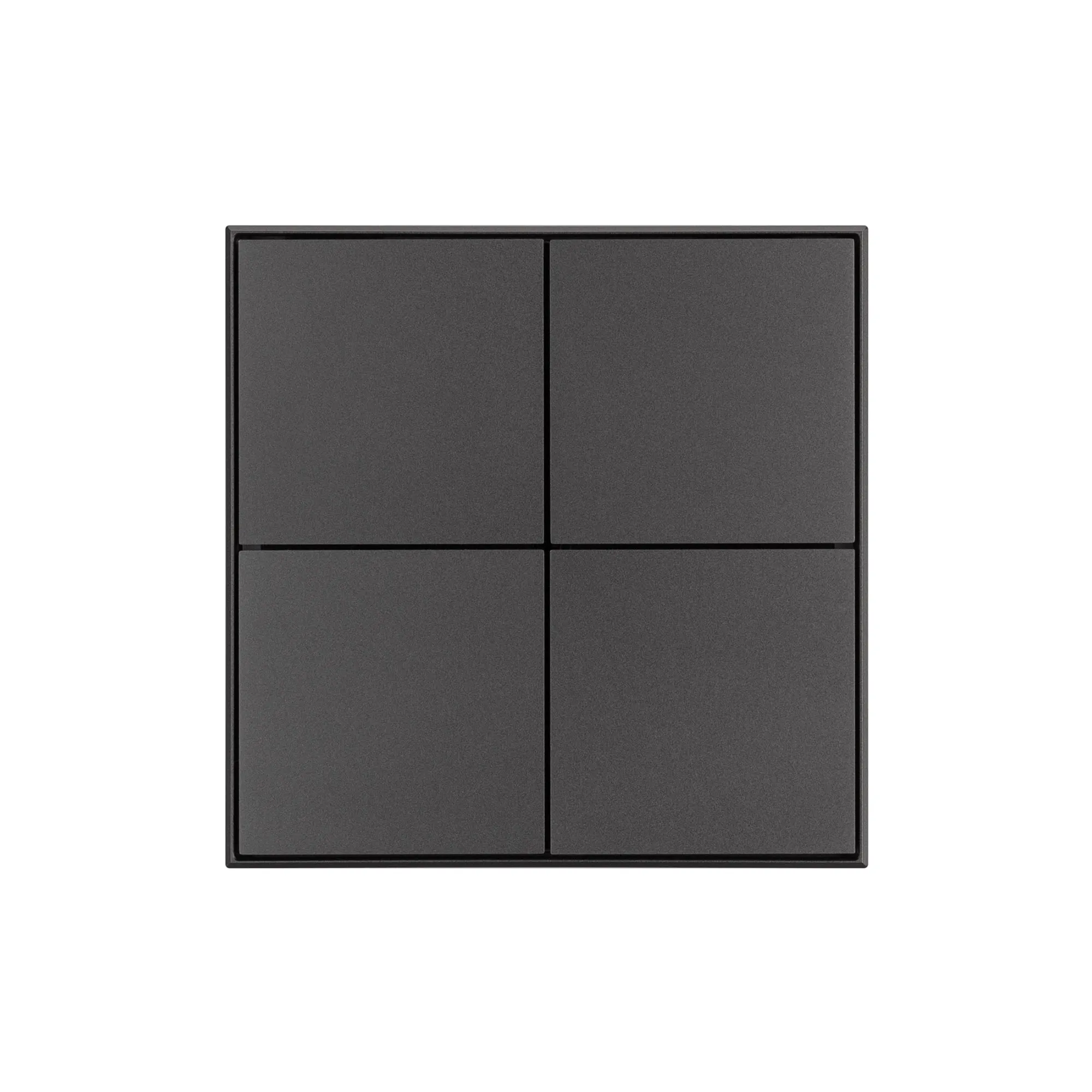 Универсальная многофункциональная встраиваемая настенная панель для систем KNX. 4 рокерные клавиши, 1 клавиша может выполнять функции 2-х клавиш. Тонкая рамка, материал - алюминий, отклик вибрацией, светодиодная индикация. Цвет корпуса - титановый чёрный. Питание от шины KNX DC 21-30V. Габариты 86x86x33 мм.
