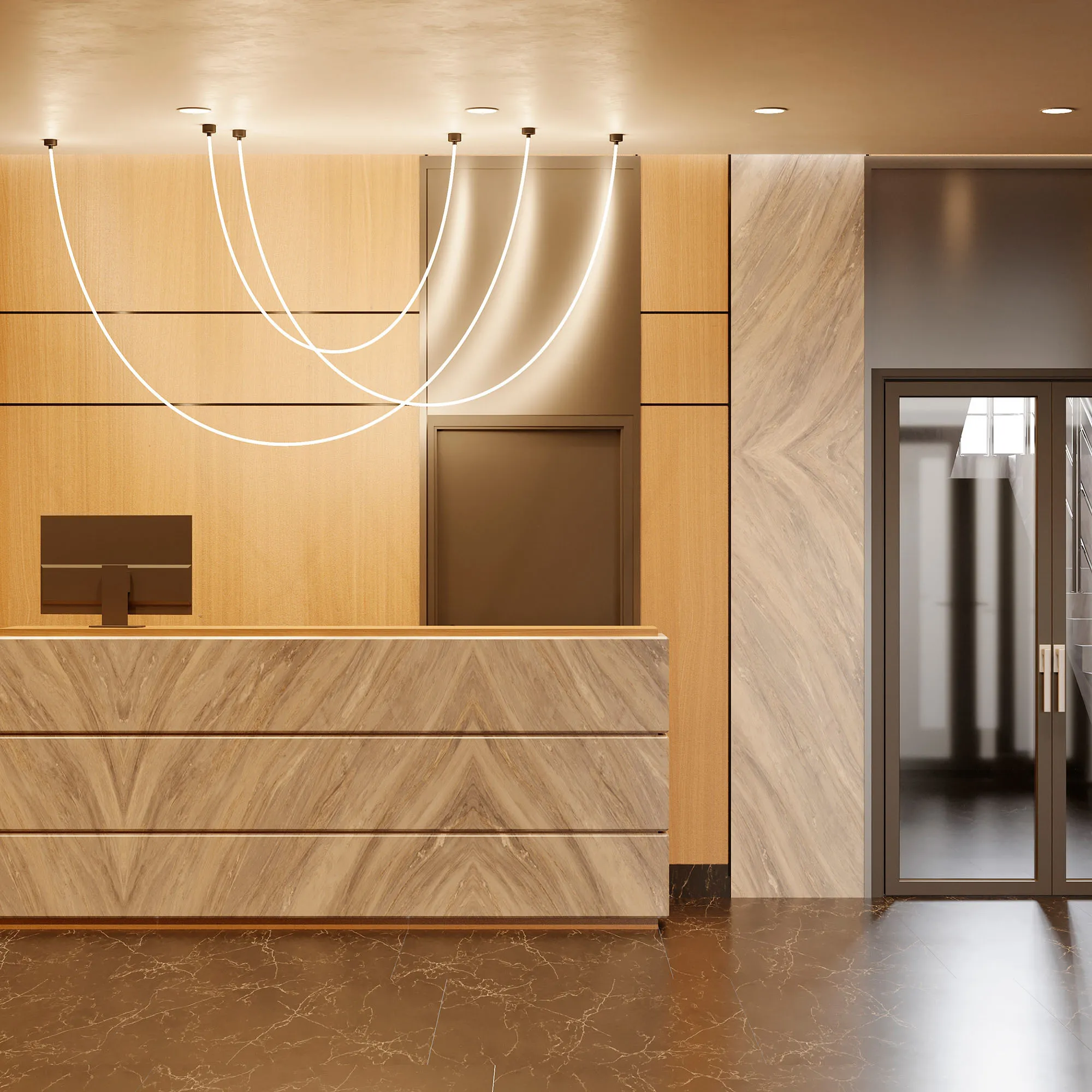 Подвесной светильник. Мощность 110 Вт, св. поток 7455 лм, 67 лм/Вт, дневной 4000 K, CRI>90, угол 360°, напряжение питания 230 В. Золотой круглый корпус из стали, силиконовая герметичная лента, степень защиты IP20. Размер: общая высота чаши 85 мм, высота чаши без вывода под неон 50 мм, диаметр вывода под неон 35 мм, диаметр чаши 130 мм, диаметр силиконовой герметичной ленты 18 мм, длина силиконовой герметичной ленты 10000 мм. Монтаж накладной. Блок питания 24 В, 2500 мА, пульсация <5% (2 шт.). Аксессуары (подвес и крепление) приобретаются отдельно.