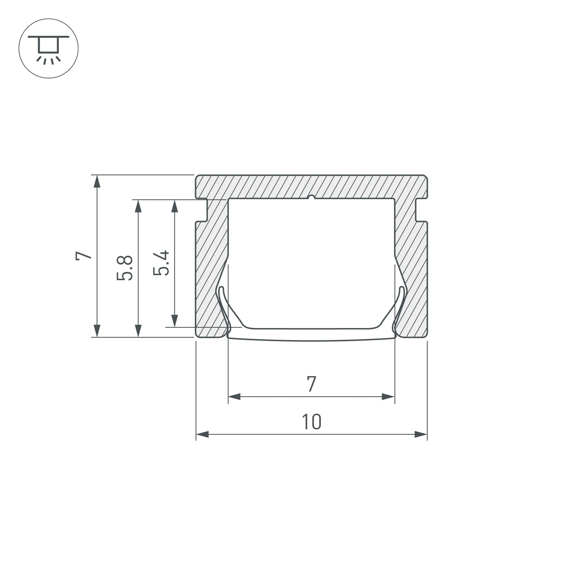 Алюминиевый анодированный мини-профиль для светодиодных лент и линеек. Габаритные размеры (L×W×H): 3000x10x7 мм. Ширина площадки для ленты 7 мм. Экраны, заглушки и другие аксессуары приобретаются отдельно. Цена за 1 метр.