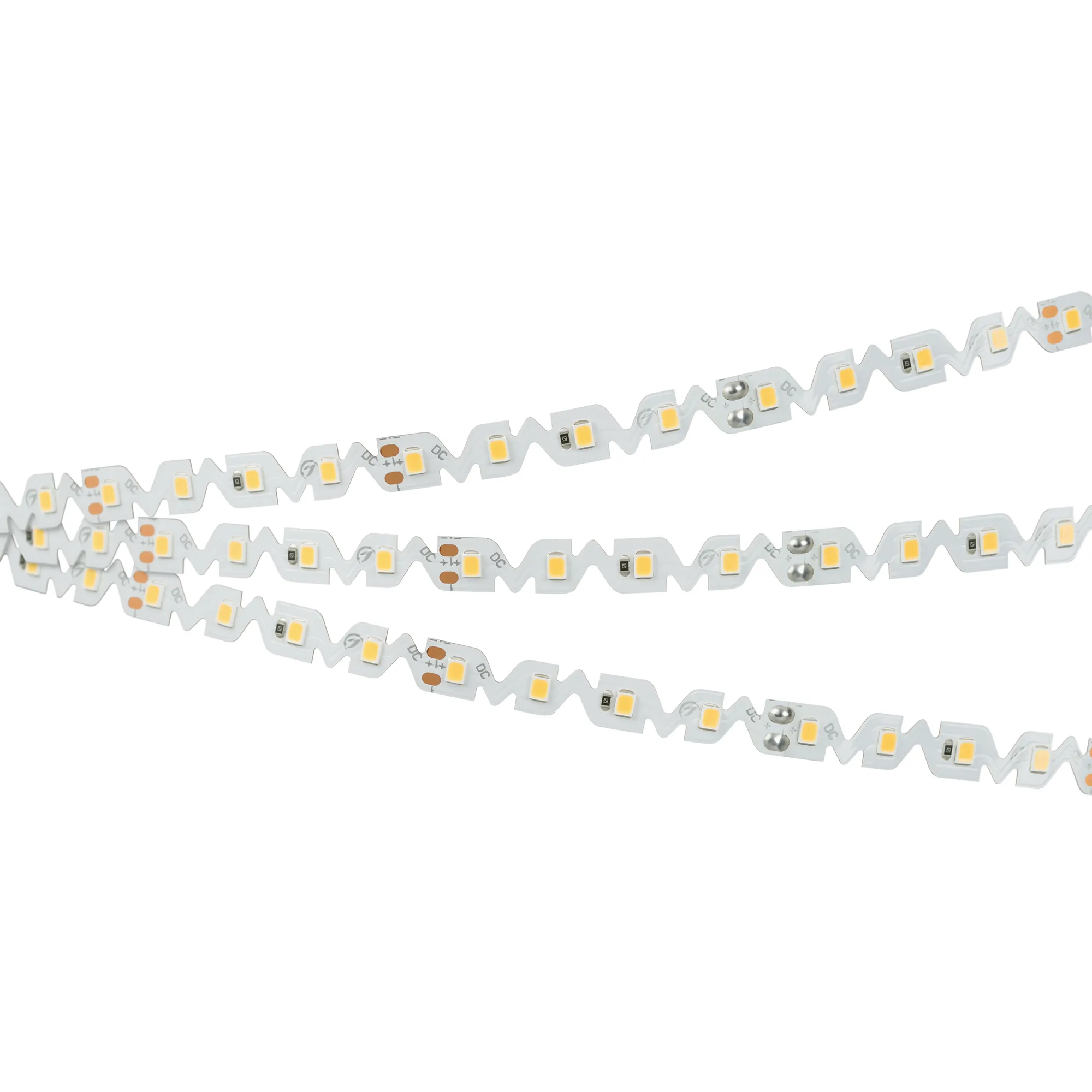 Гибкая светодиодная лента RZ серии A80 с фигурной платой в форме волны, легко изгибается на плоскости. Светодиоды SMD 2835, 80 шт/м, белая плата шириной 8 мм, скотч 3М. Цвет ТЕПЛЫЙ 2700K, индекс цветопередачи CRI>90, угол 120°. Питание 24 В, мощность 8 Вт/м (40Вт на 5 м). Размеры 5000х8х1.2 мм. Мин. отрезок 50 мм, 4 светодиода. Цена за 1 м.