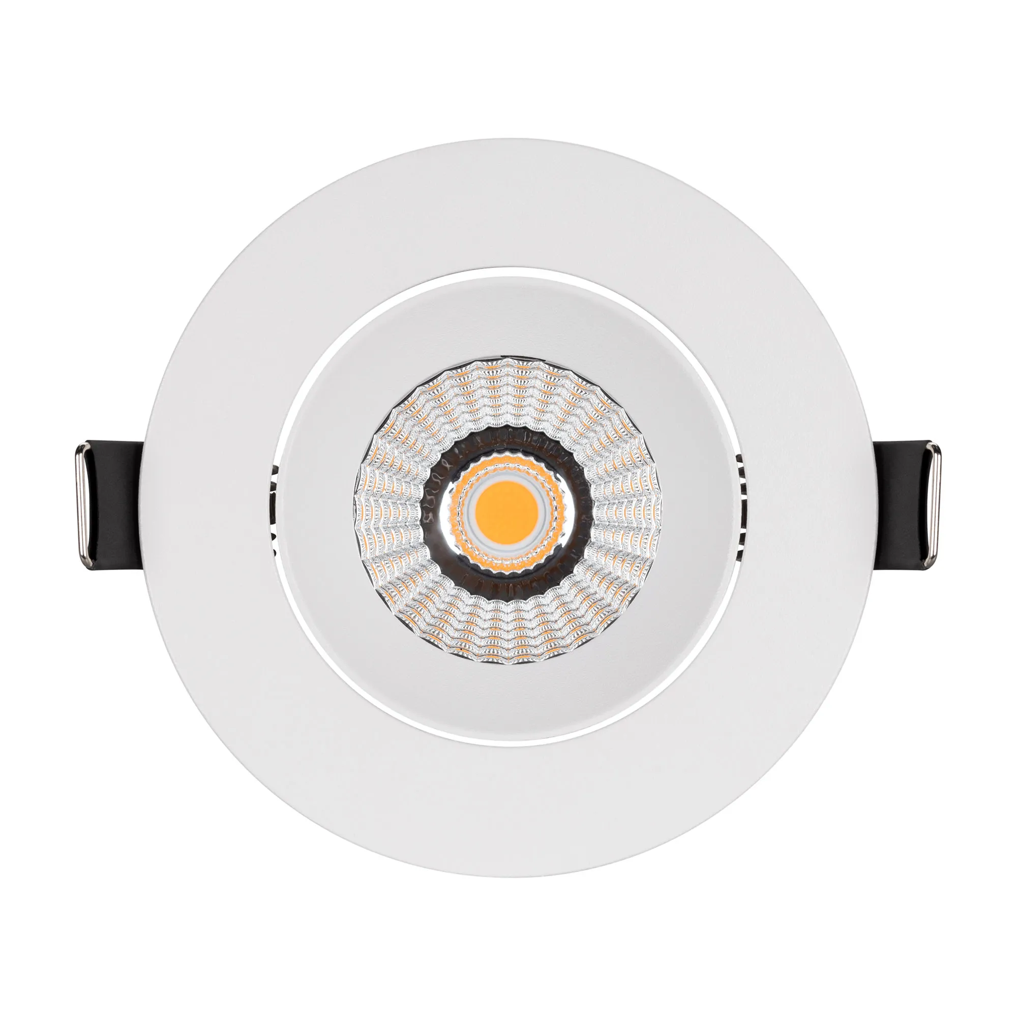 Встраиваемый поворотный светильник даунлайт. Мощность 10 Вт, св. поток 750 лм, 75 лм/Вт, теплый 3000 K, CRI>90, угол 60°, напряжение питания 230 В. Белый круглый корпус из алюминия, экран PMMA, степень защиты IP54. Размер: диаметр 94 мм, высота 75 мм. Монтаж встраиваемый, установочное отверстие: диаметр 77 мм. Драйвер IP54, 20-40 В, 250 мА, пульсация <1%.