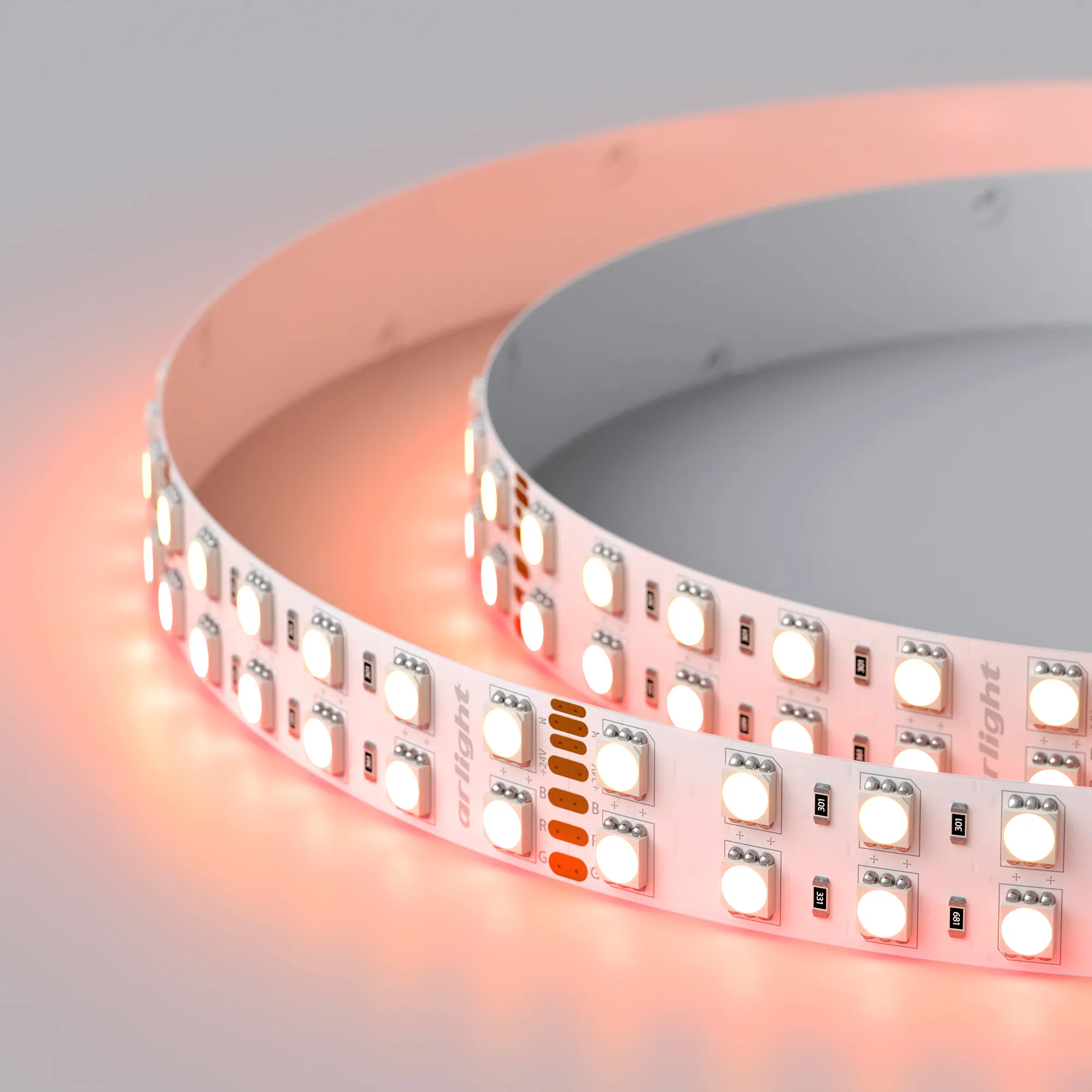 В магазине Arled Market Вы можете купить "Лента светодиодная RT 2-5000 24V RGB-Warm 2x2 (5060, 720 LED, LUX) (Arlight, 32 Вт/м, IP20)"