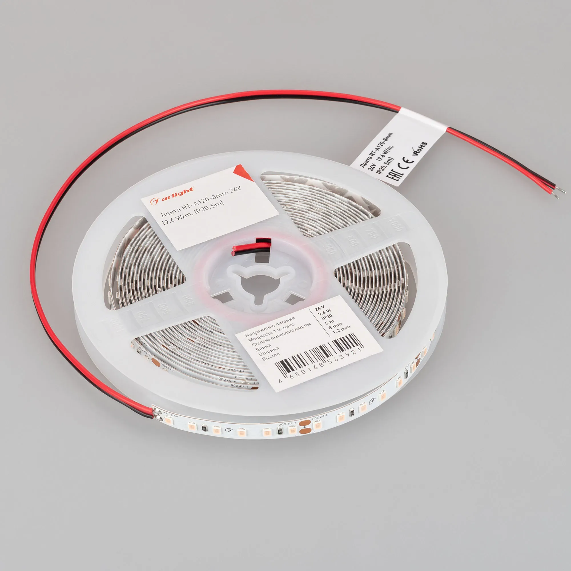 В магазине Arled Market Вы можете купить "Лента светодиодная RT-A120-8mm 24V Peach Fuzz (9.6 W/m, IP20, 5m) (Arlight, -)"