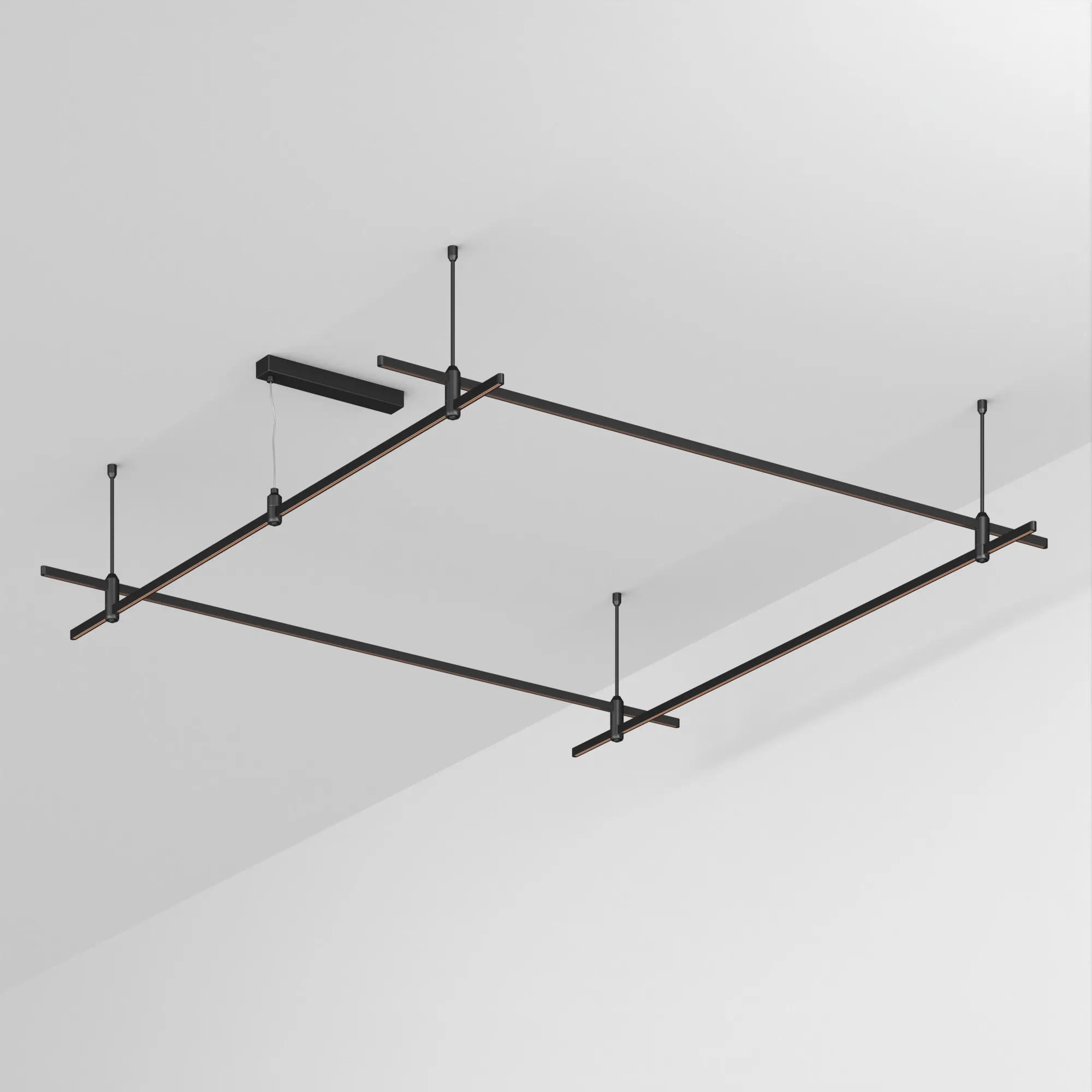 Подвесная конструкция APRIORI, форма квадрат. В комплекте треки с аксессуарами и жесткими подвесами длиной 400мм. DC48V. Материал алюминий, цвет черный. Размер ДxШxВ: 2000x2000x22мм. Светильники и источники питания приобретаются отдельно.